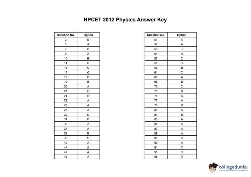 | HPCET 2012 Physics Question Paper PDF | HPCET 2012 Physics Answer Key PDF |