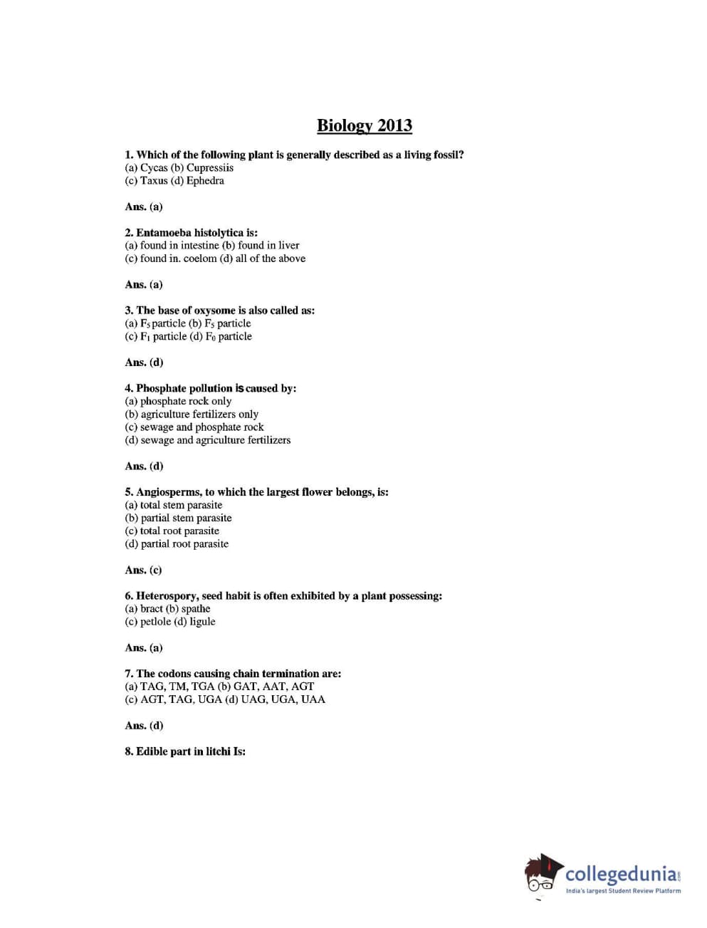 | HPCET 2013 Biology Question Paper PDF | HPCET 2013 Biology Answer Key PDF |