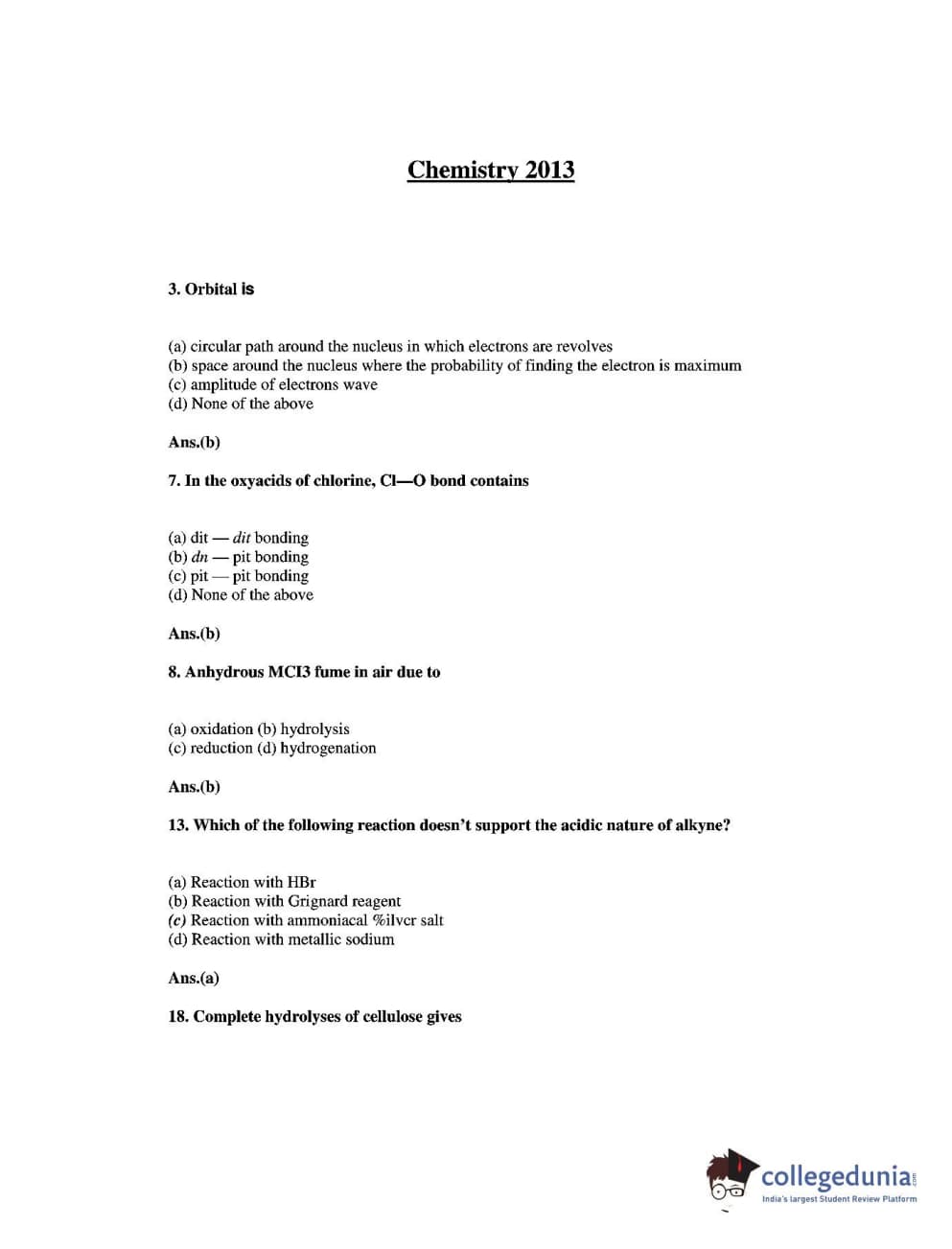 HPCET 2013 Chemistry Question Paper with Answer Key PDFs