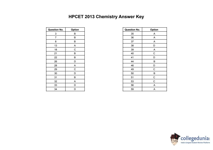 | HPCET 2013 Chemistry Question Paper PDF | HPCET 2013 Chemistry Answer Key PDF |