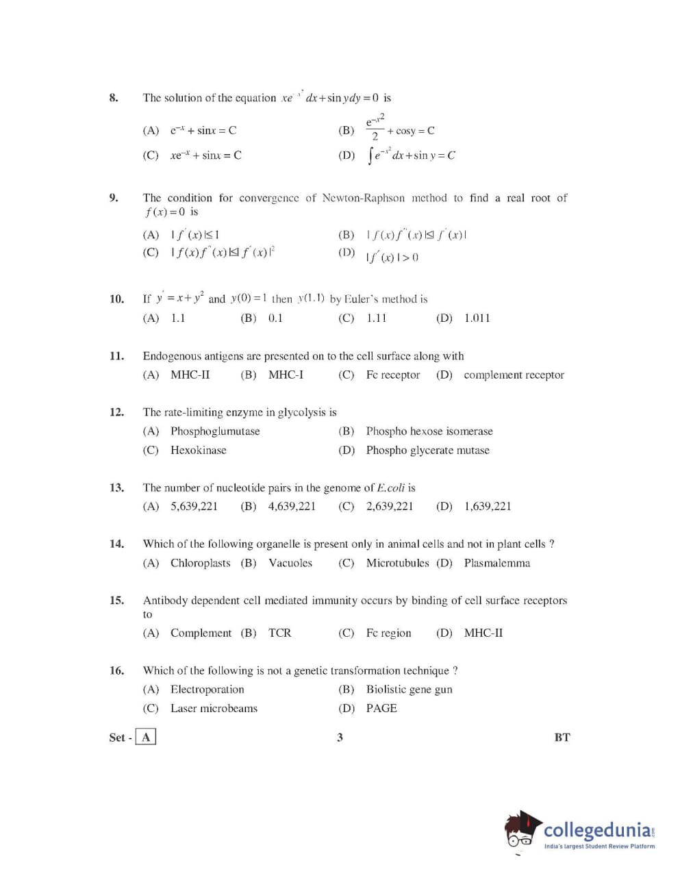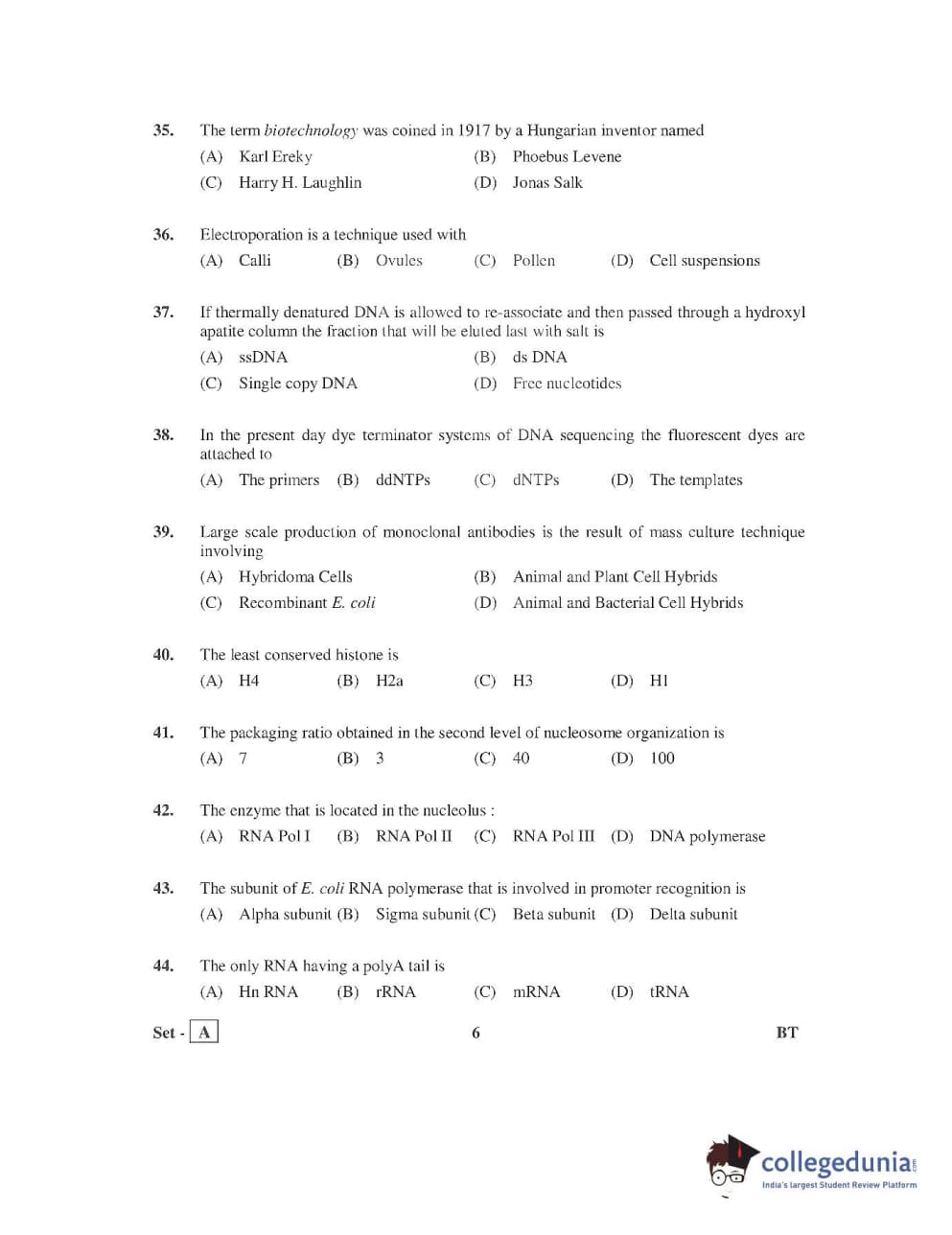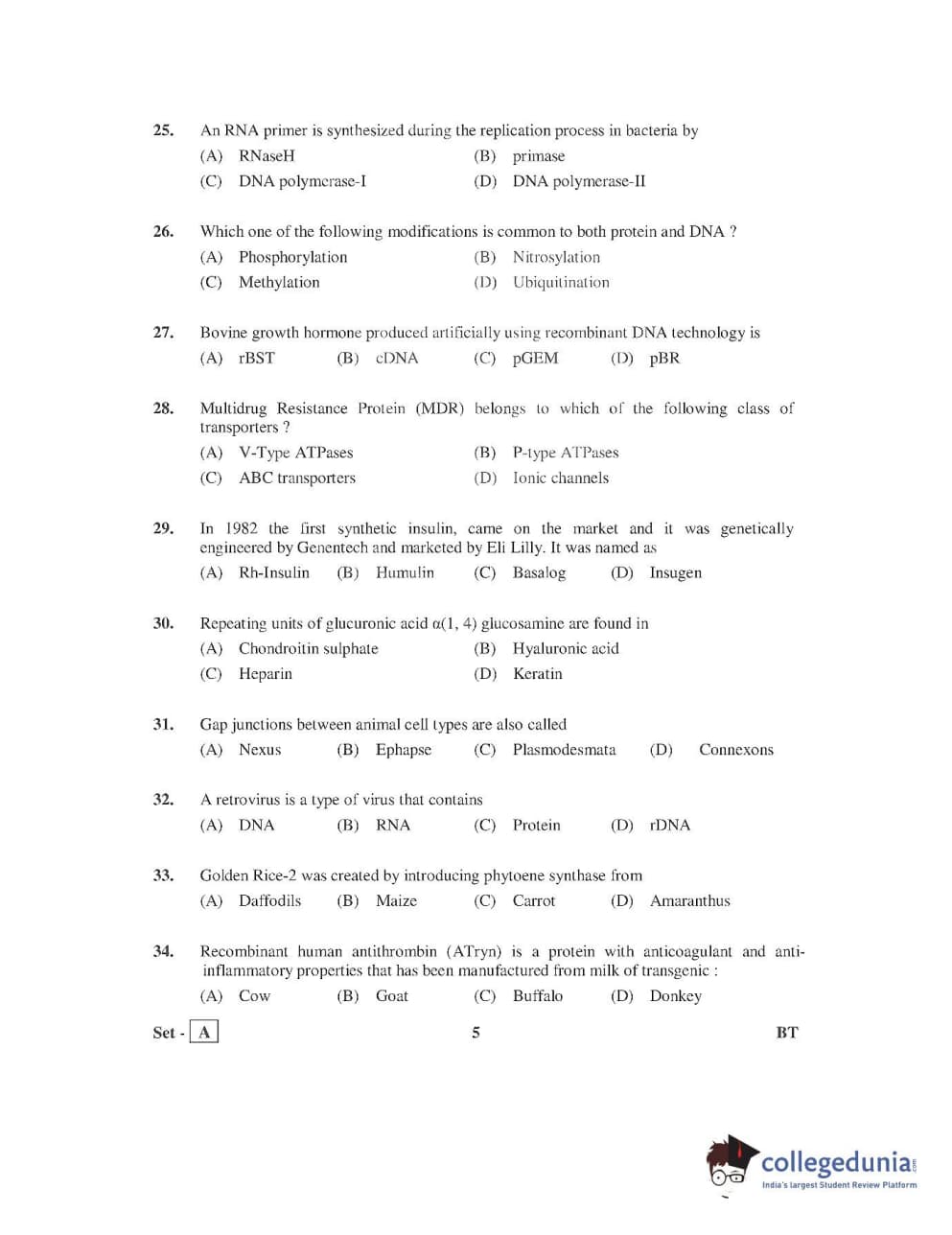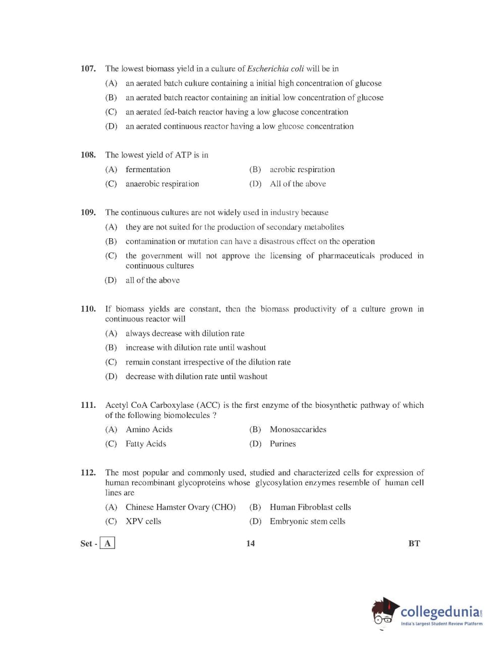 AP PGECET 2016 Bio Technology Question Paper with Answer Key PDFs