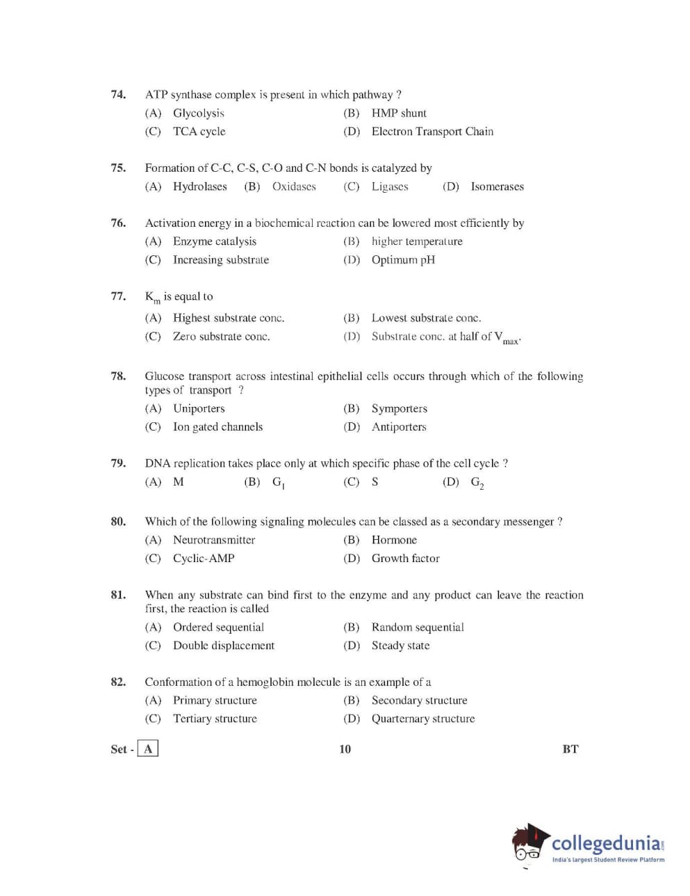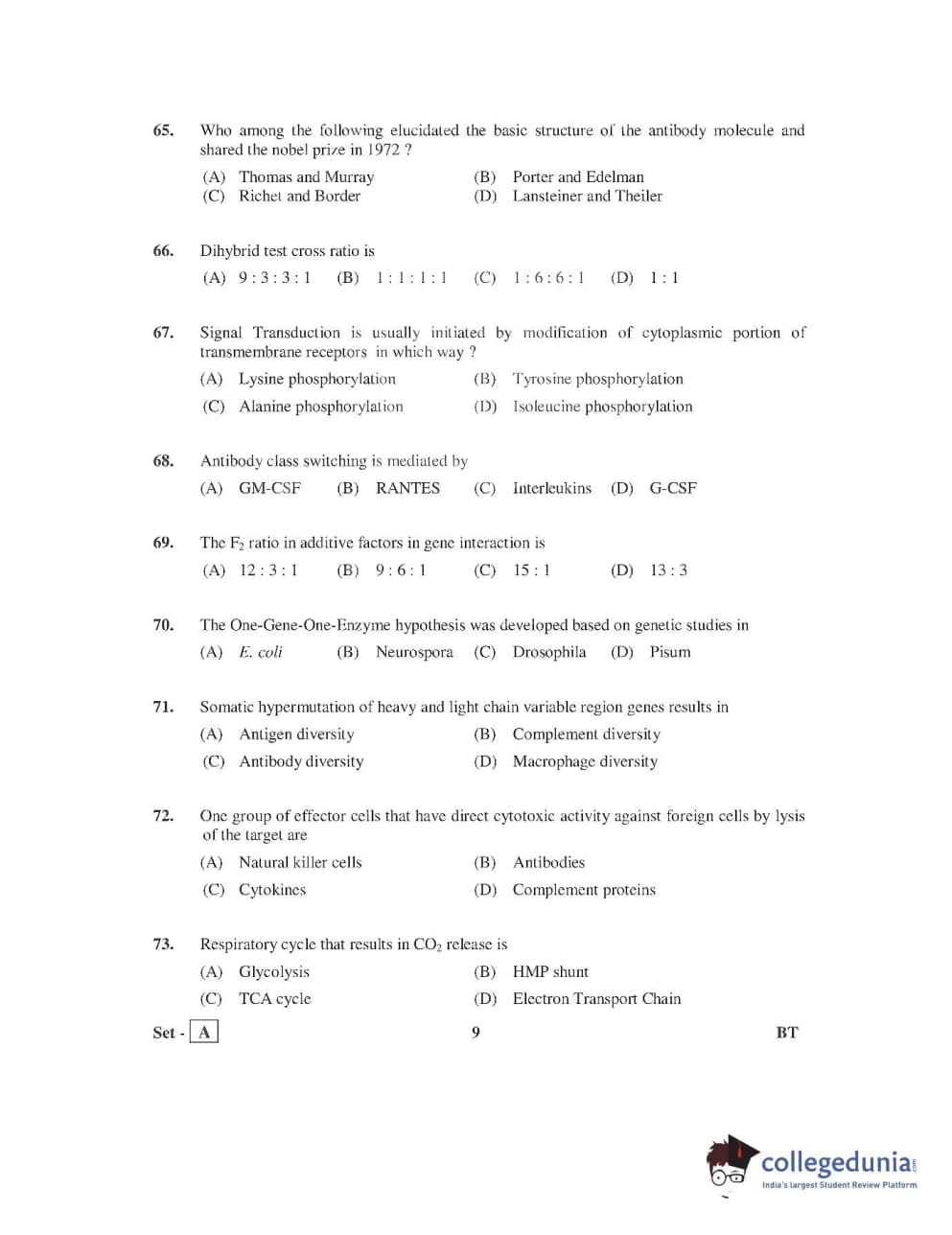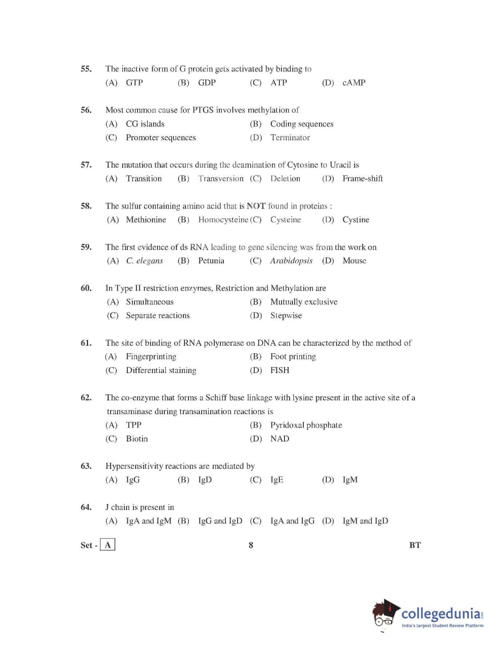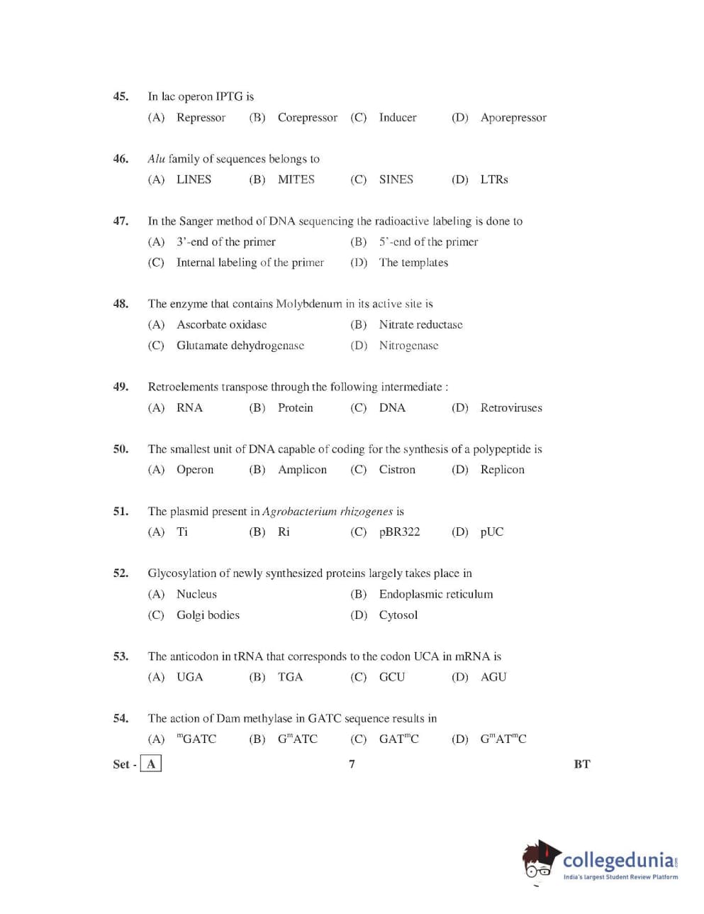 AP PGECET 2016 Bio Technology Question Paper with Answer Key PDFs