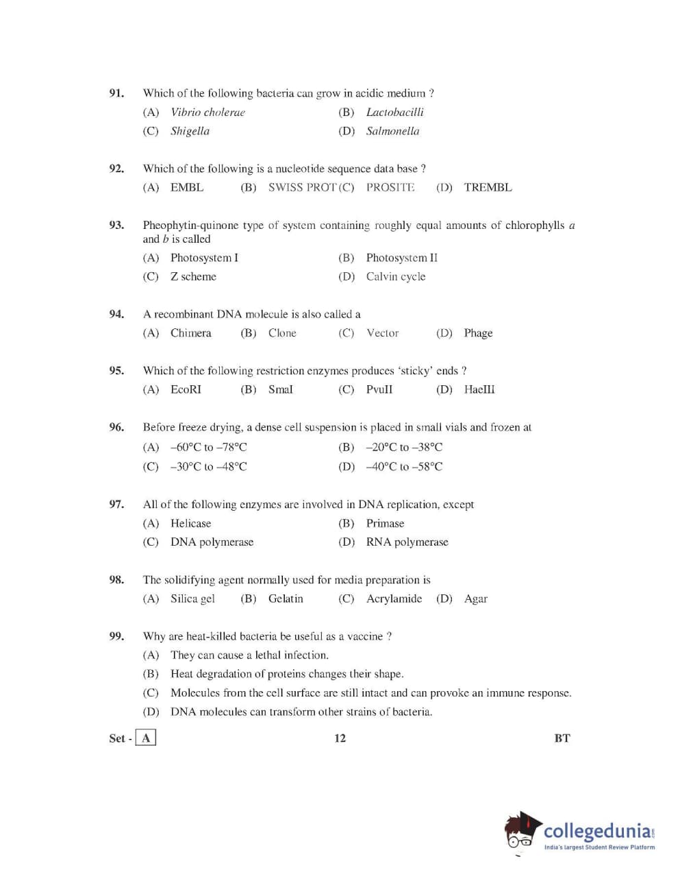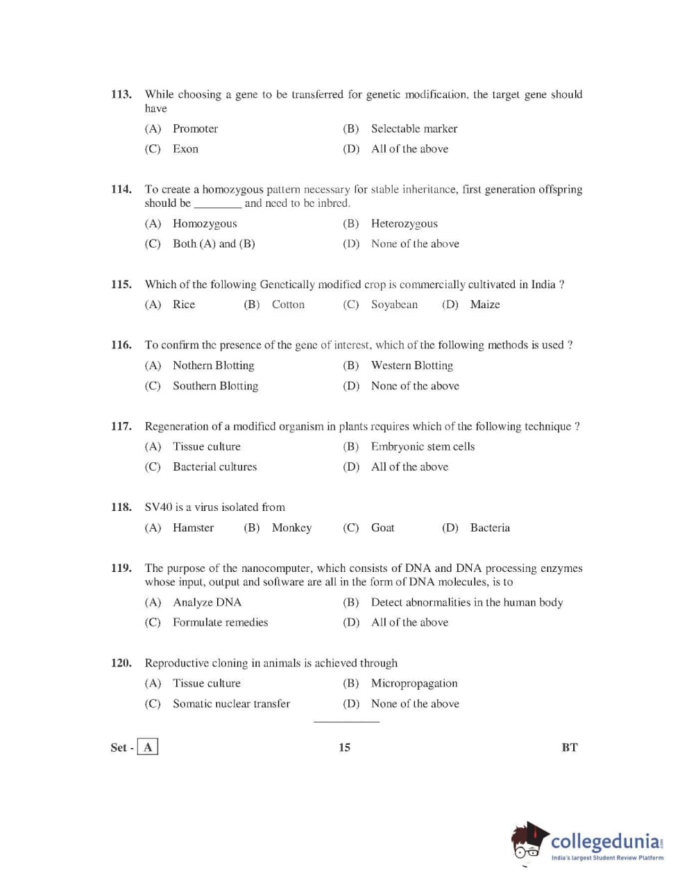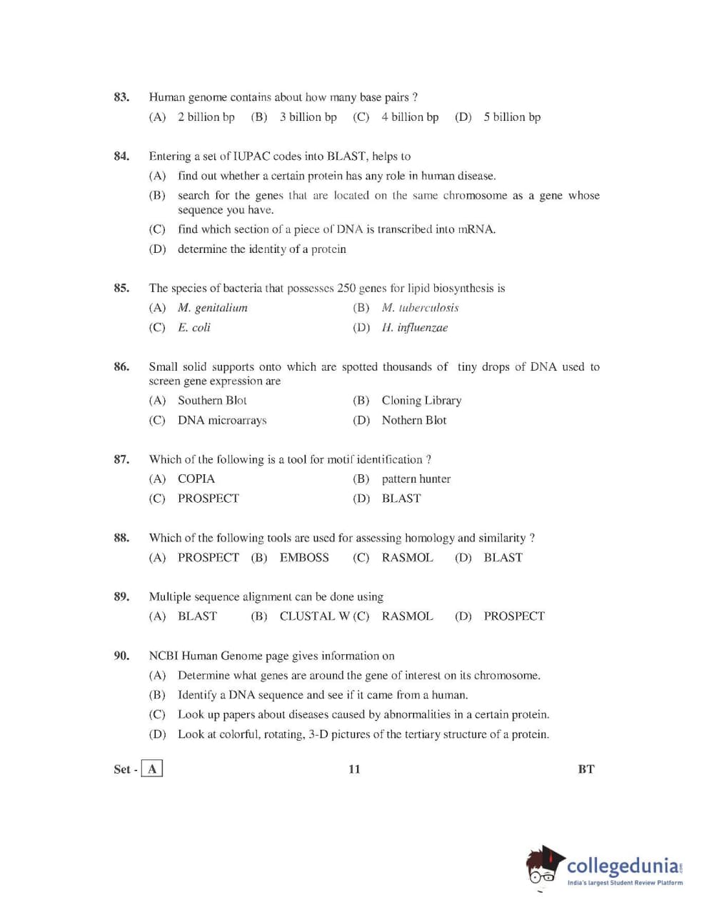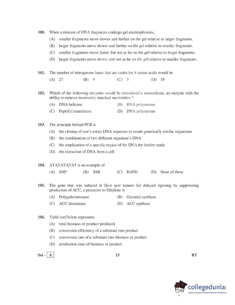 AP PGECET 2016 Bio Technology Question paper with answer key pdf is available for download. The exam was successfully organized by Jawaharlal Nehru Technological University, Kakinada (JNTUK). The question paper comprised a total of 120 questions.