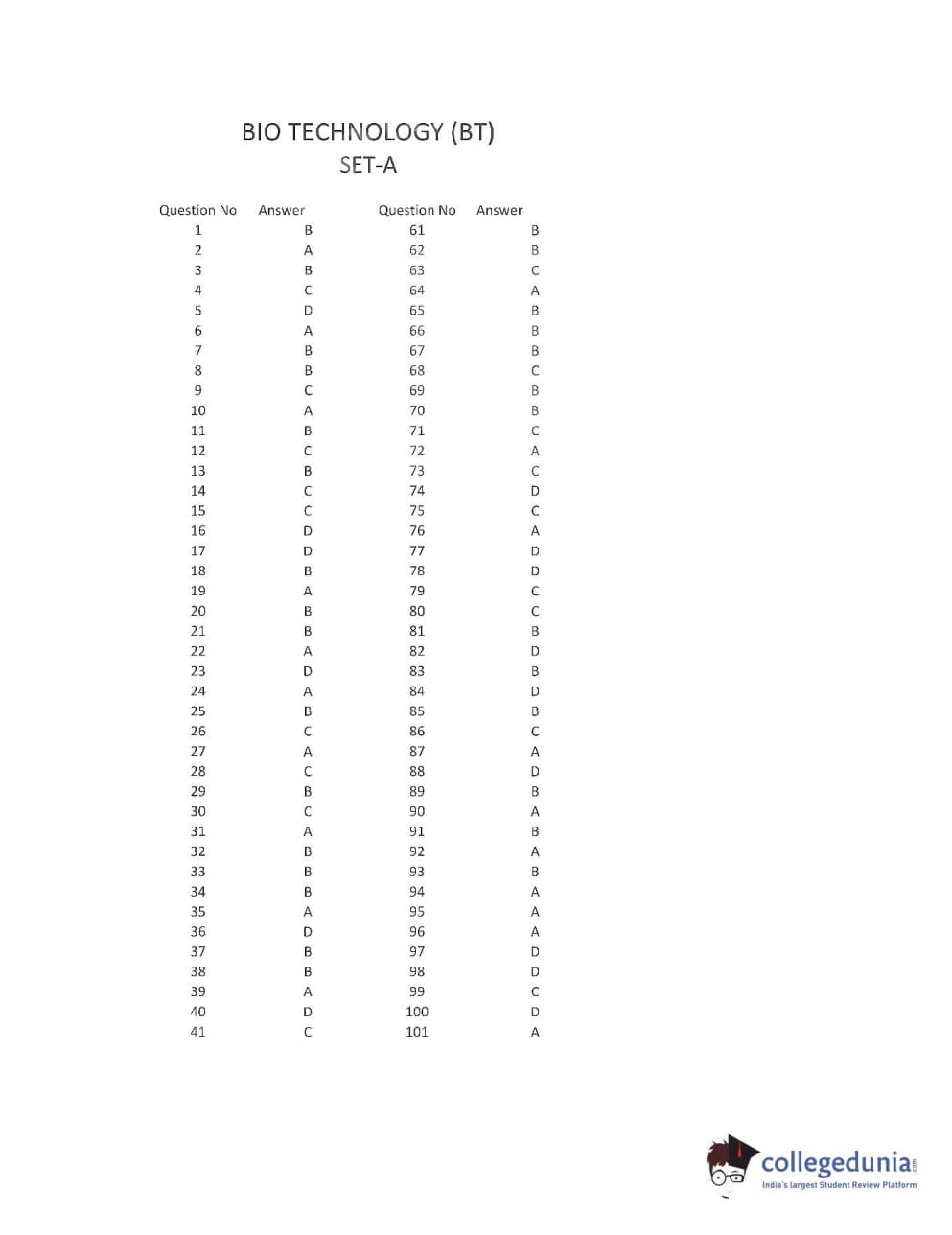 | AP PGECET 2016 Bio Technology Question Paper PDF | AP PGECET 2016 Bio Technology Answer Key PDF |