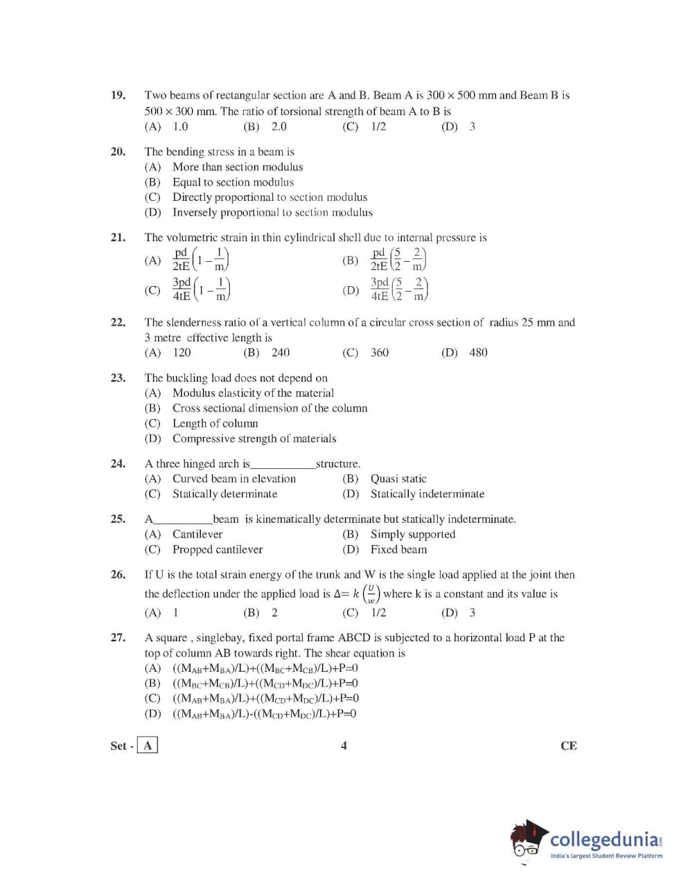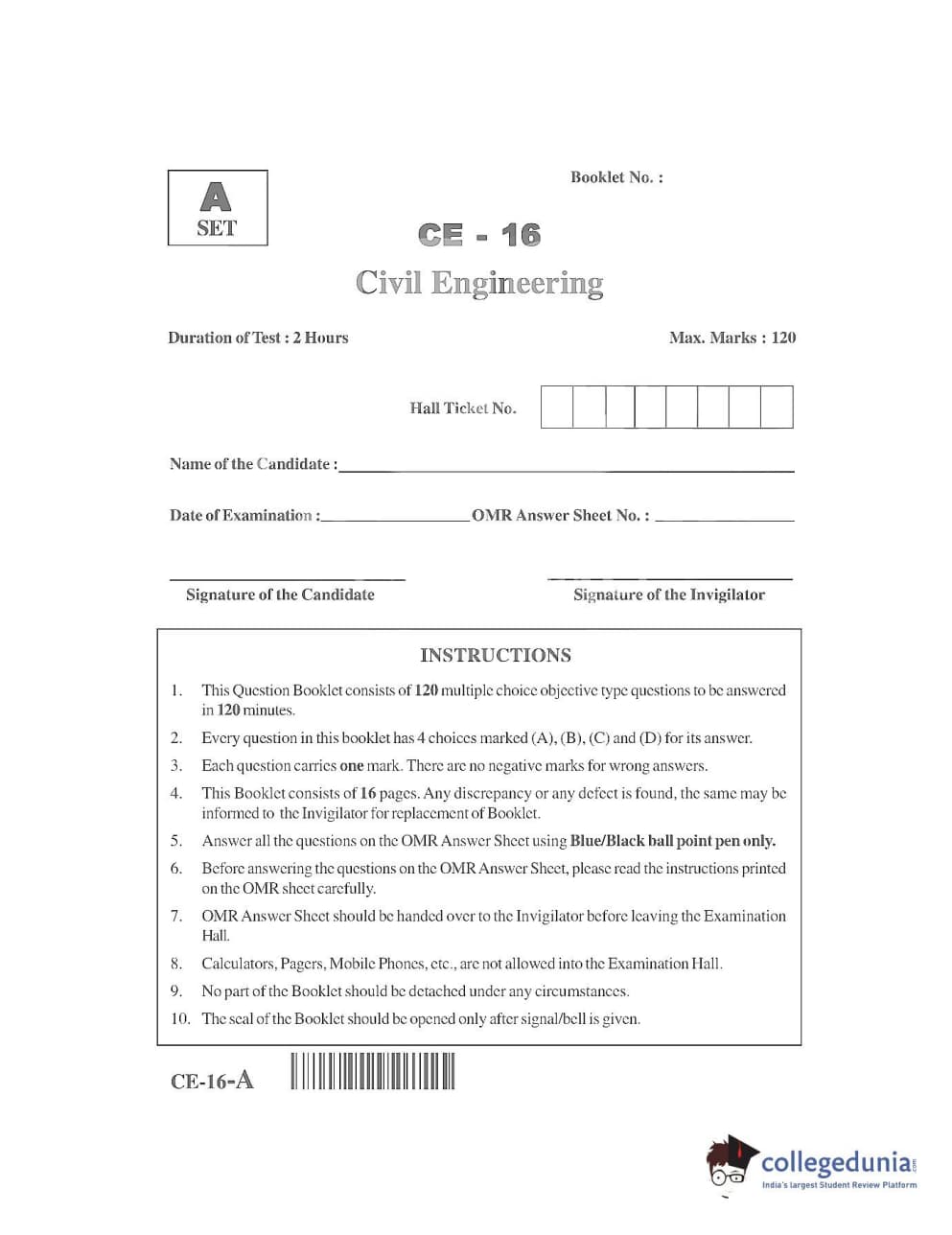 AP PGECET 2016 Civil Engineering Question paper with answer key pdf is available for download. The exam was successfully organized by Jawaharlal Nehru Technological University, Kakinada (JNTUK). The question paper comprised a total of 120 questions.