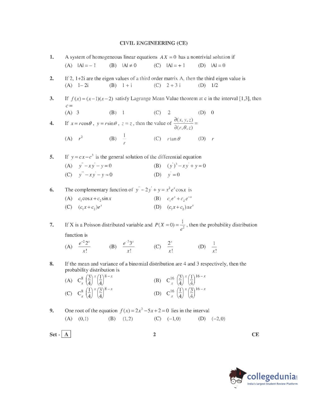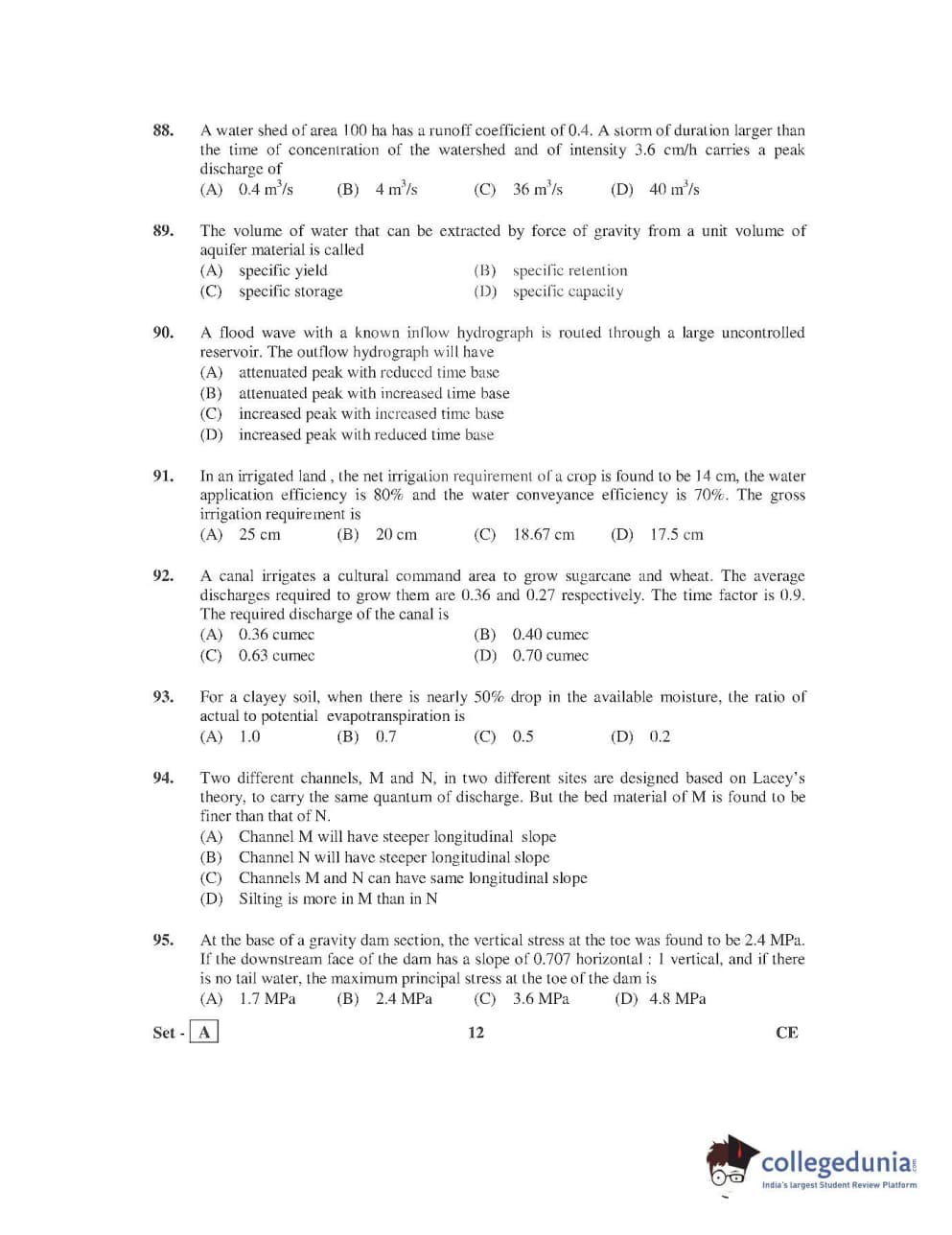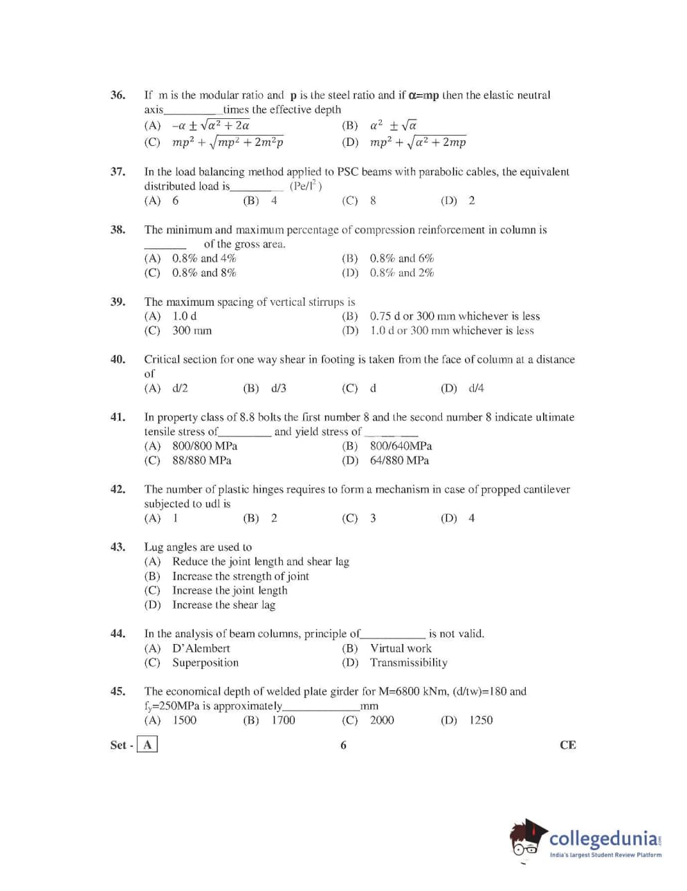 AP PGECET 2016 Civil Engineering Question Paper with Answer Key PDFs