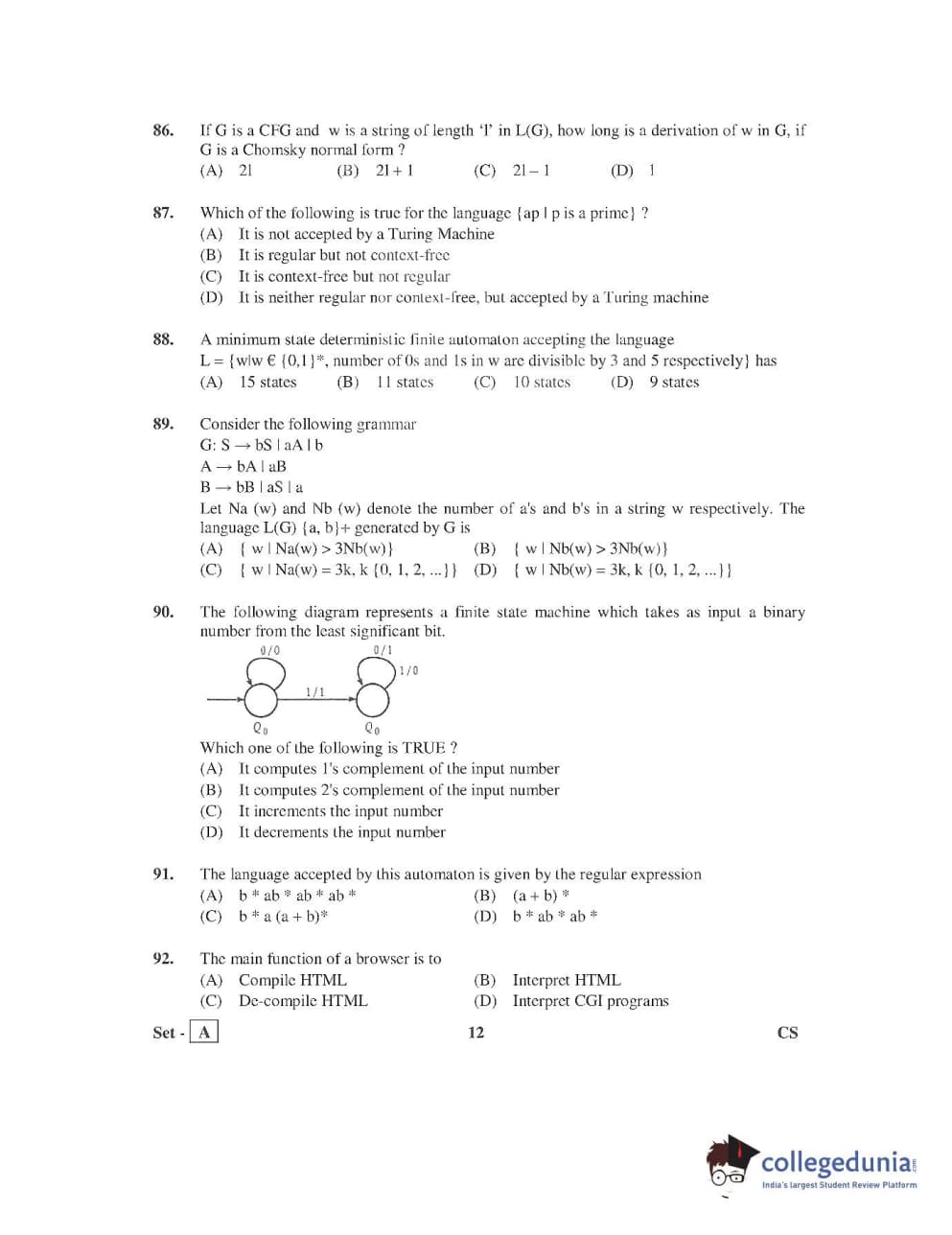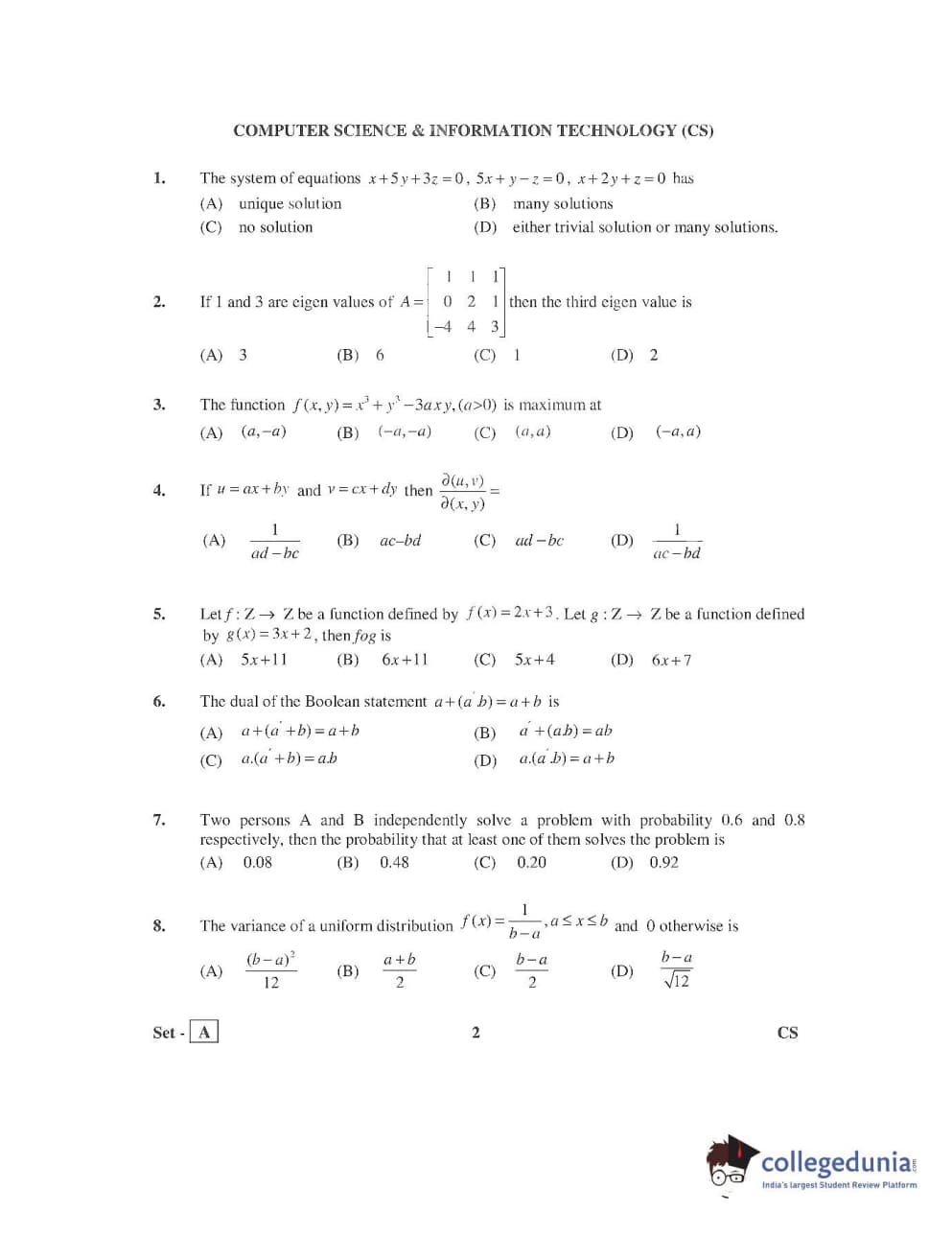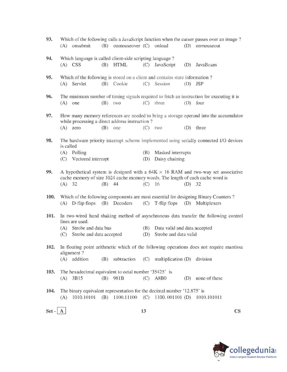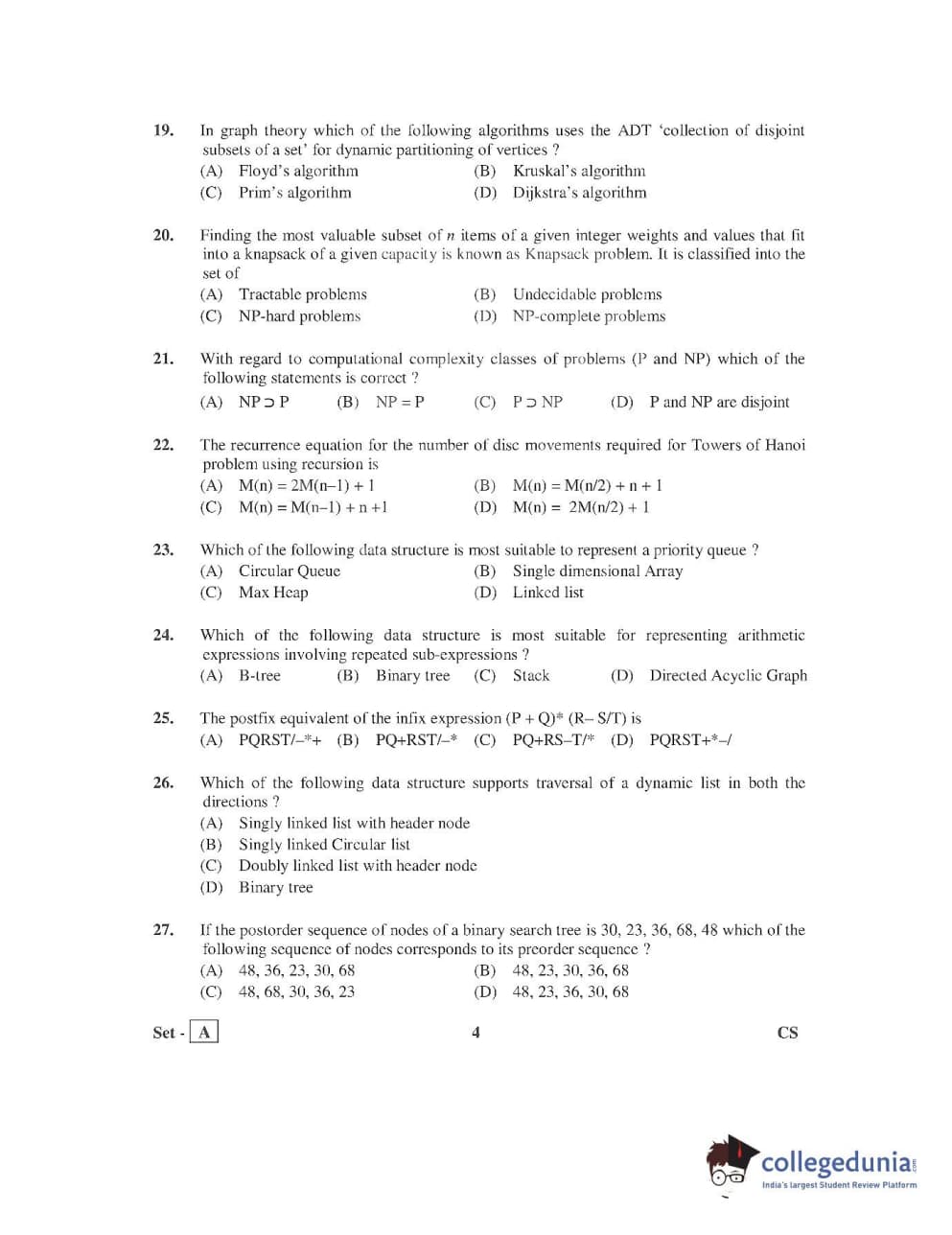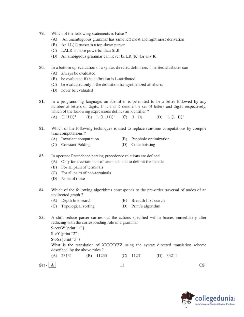 AP PGECET 2016 Computer Science and Inmation Technology Question Paper with Answer Key PDFs