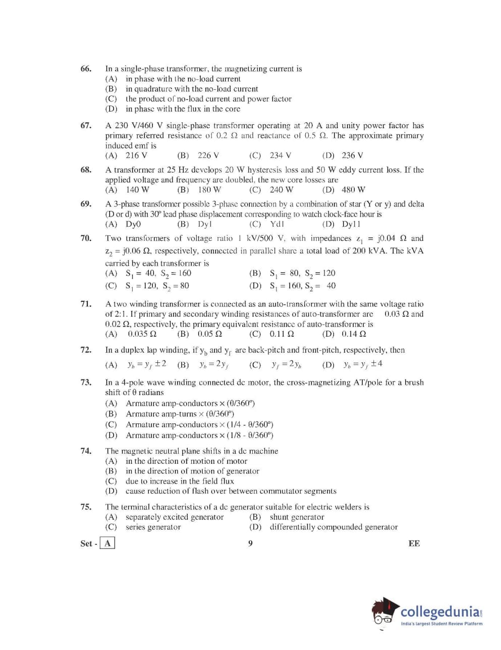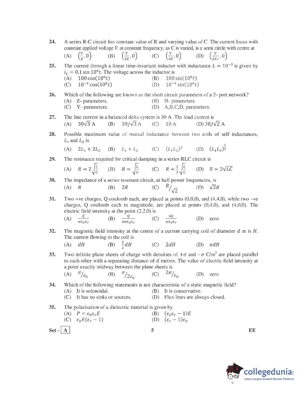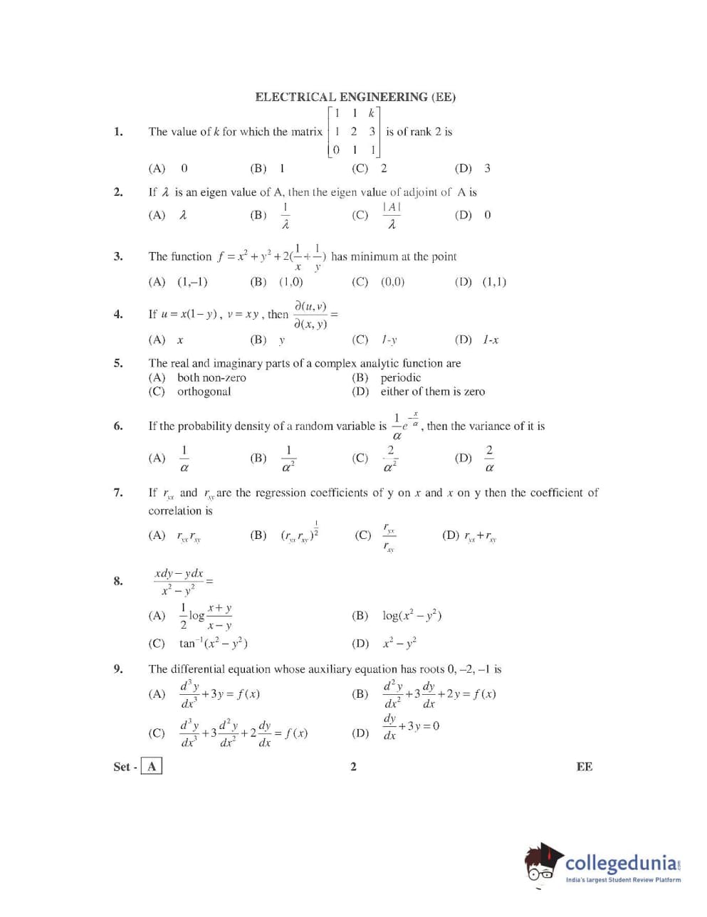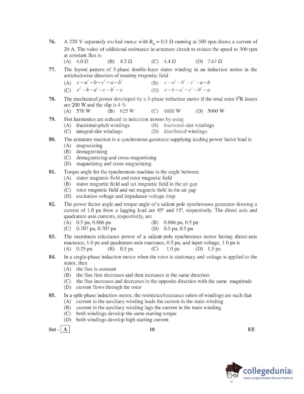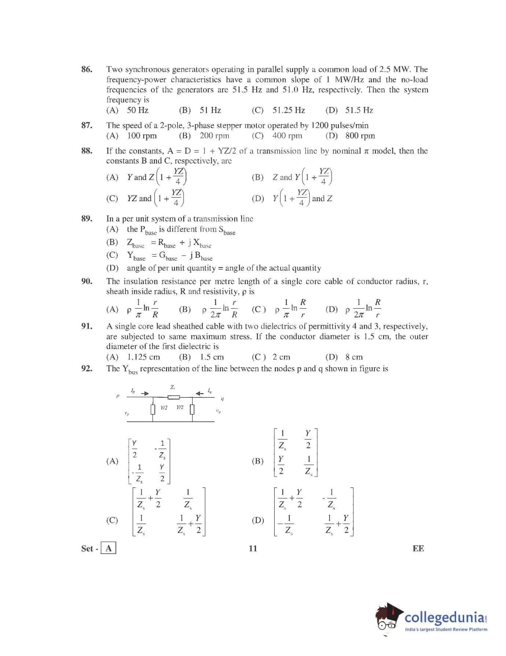 AP PGECET 2016 Electrical Engineering Question Paper with Answer Key PDFs