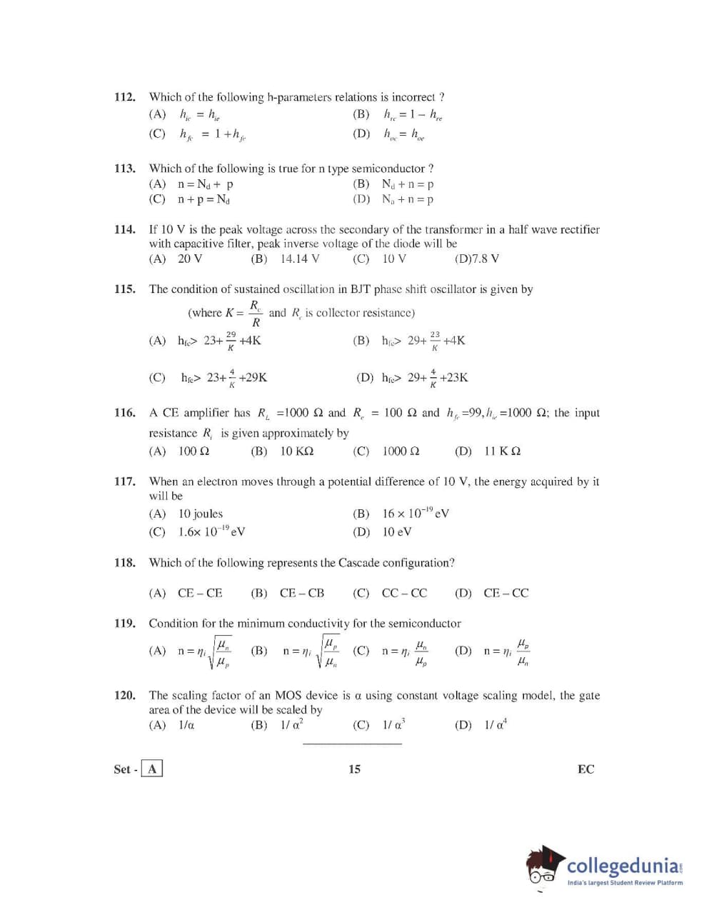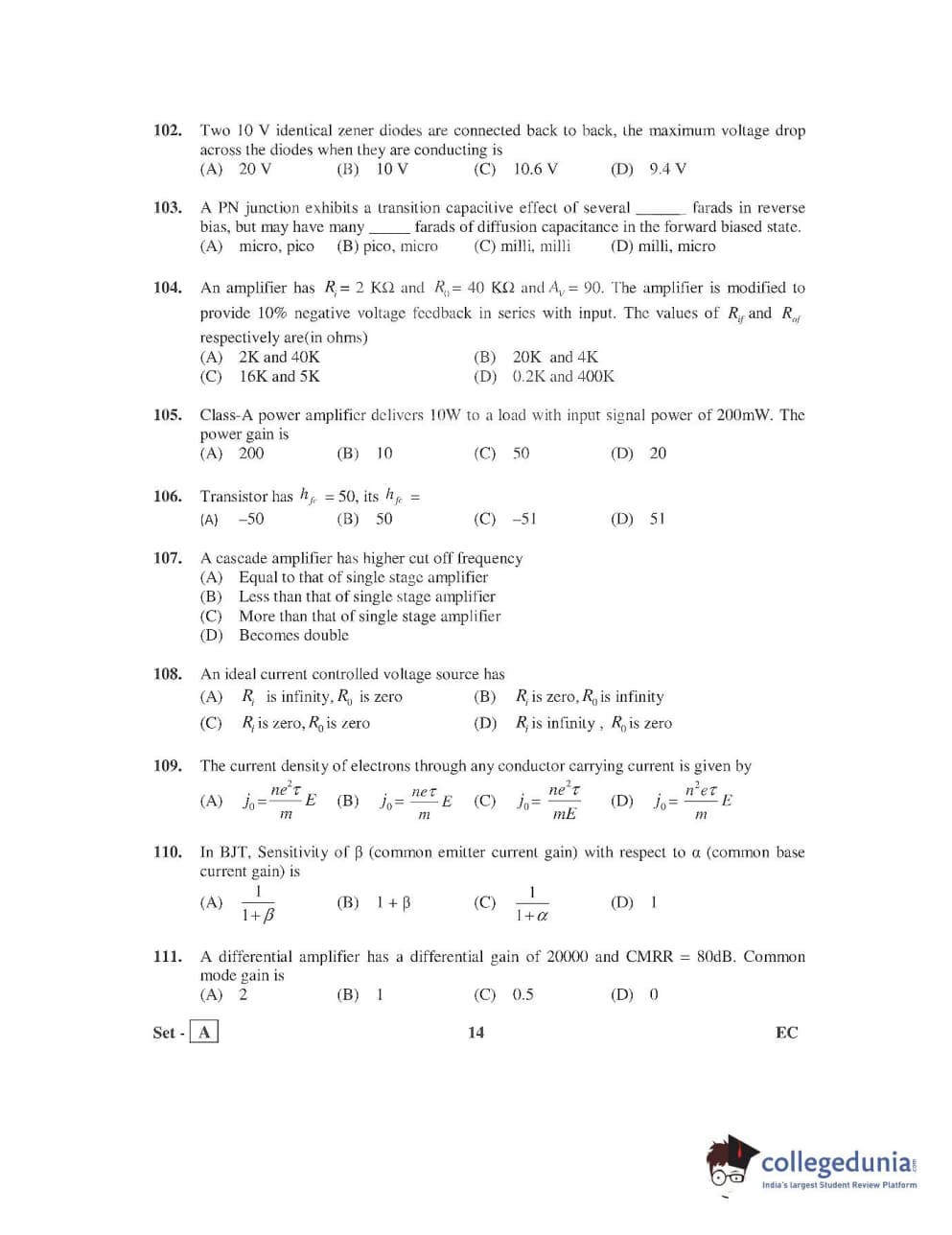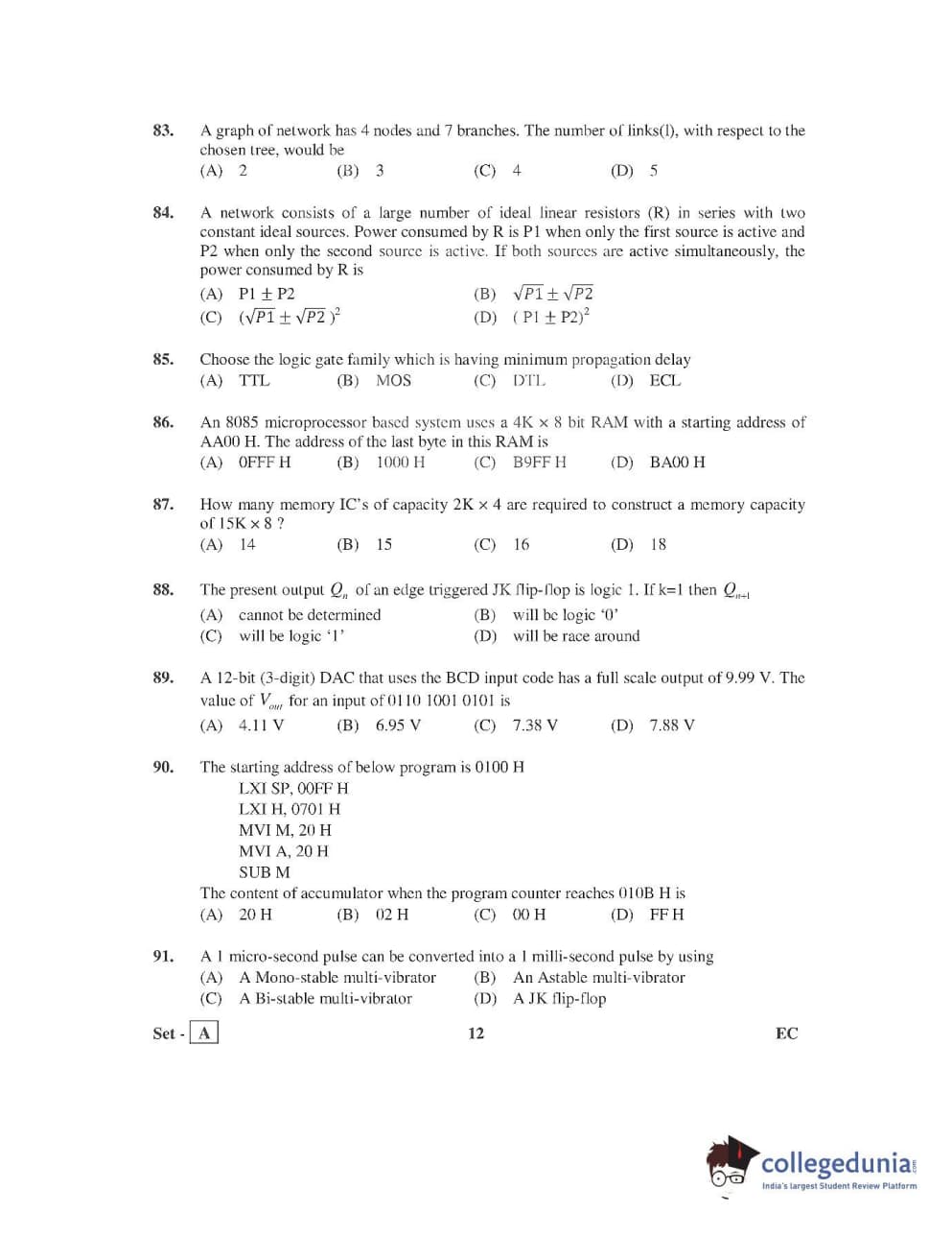 AP PGECET 2016 Electronics and Communication Engineering Question Paper with Answer Key PDFs