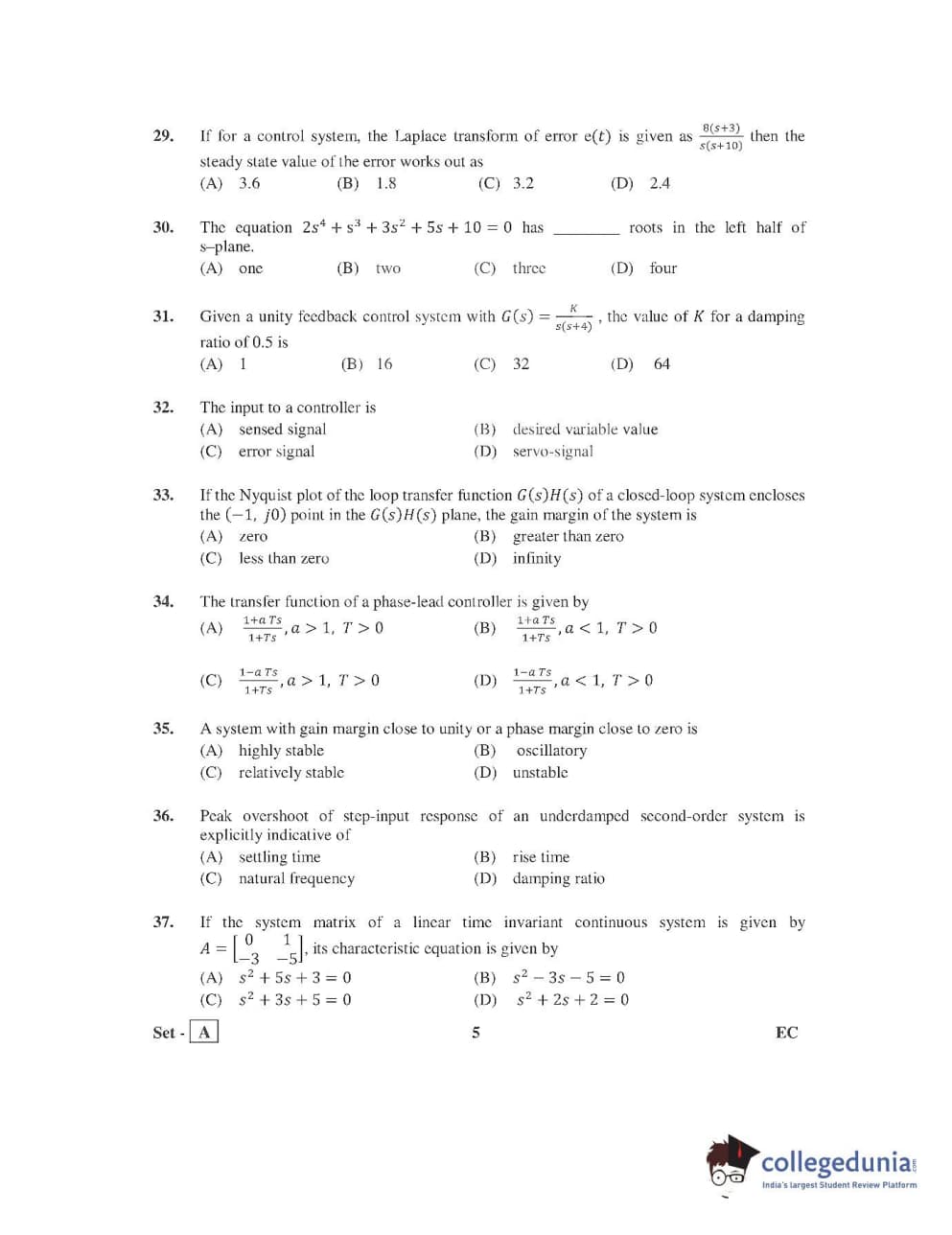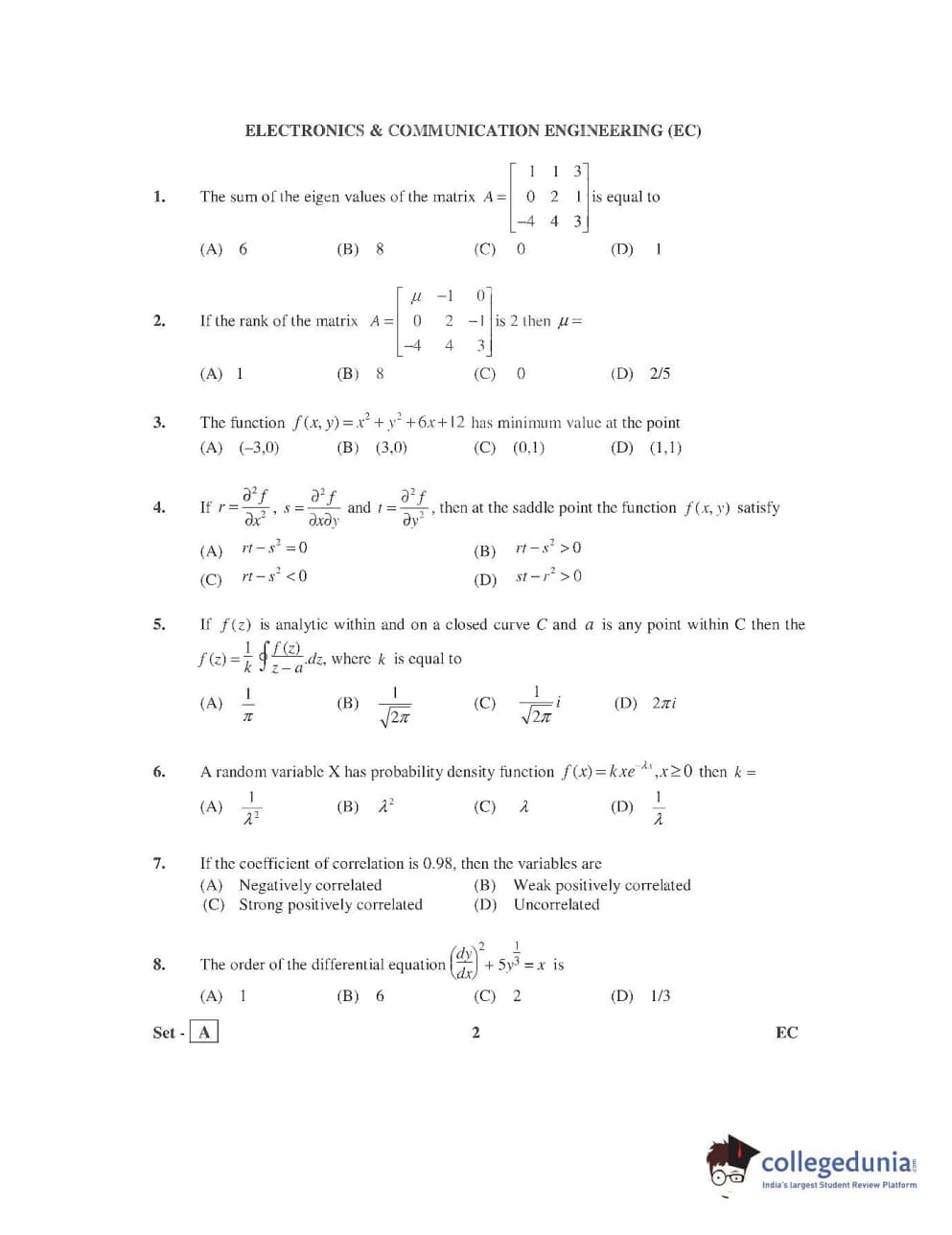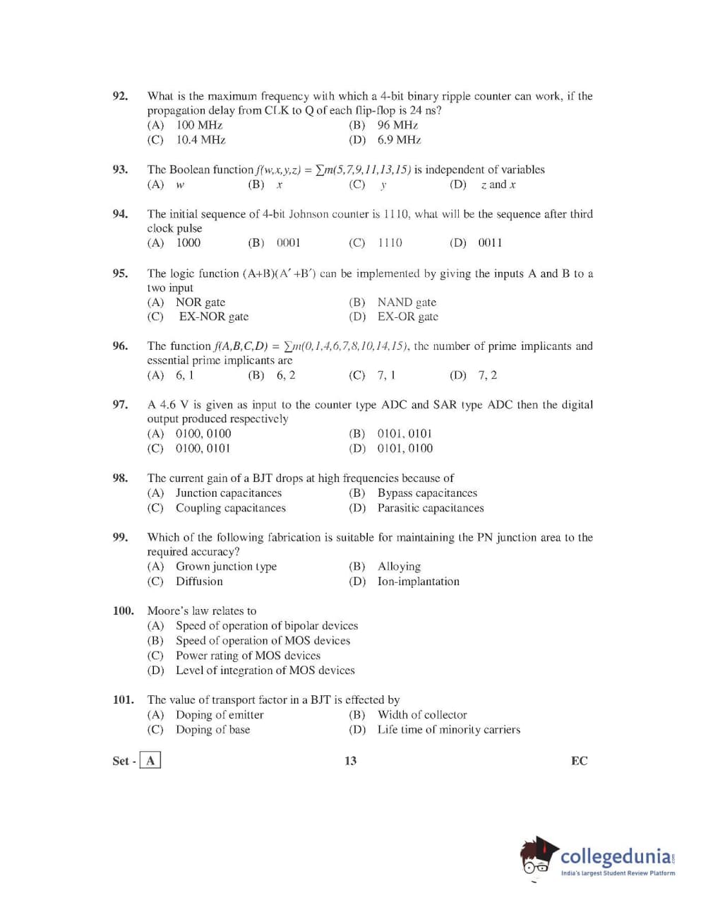 AP PGECET 2016 Electronics and Communication Engineering Question Paper with Answer Key PDFs