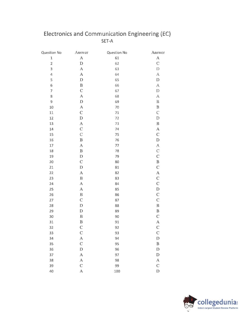 | AP PGECET 2016 Electronics and Communication Engineering Question Paper PDF | AP PGECET 2016 Electronics and Communication Engineering Answer Key PDF |