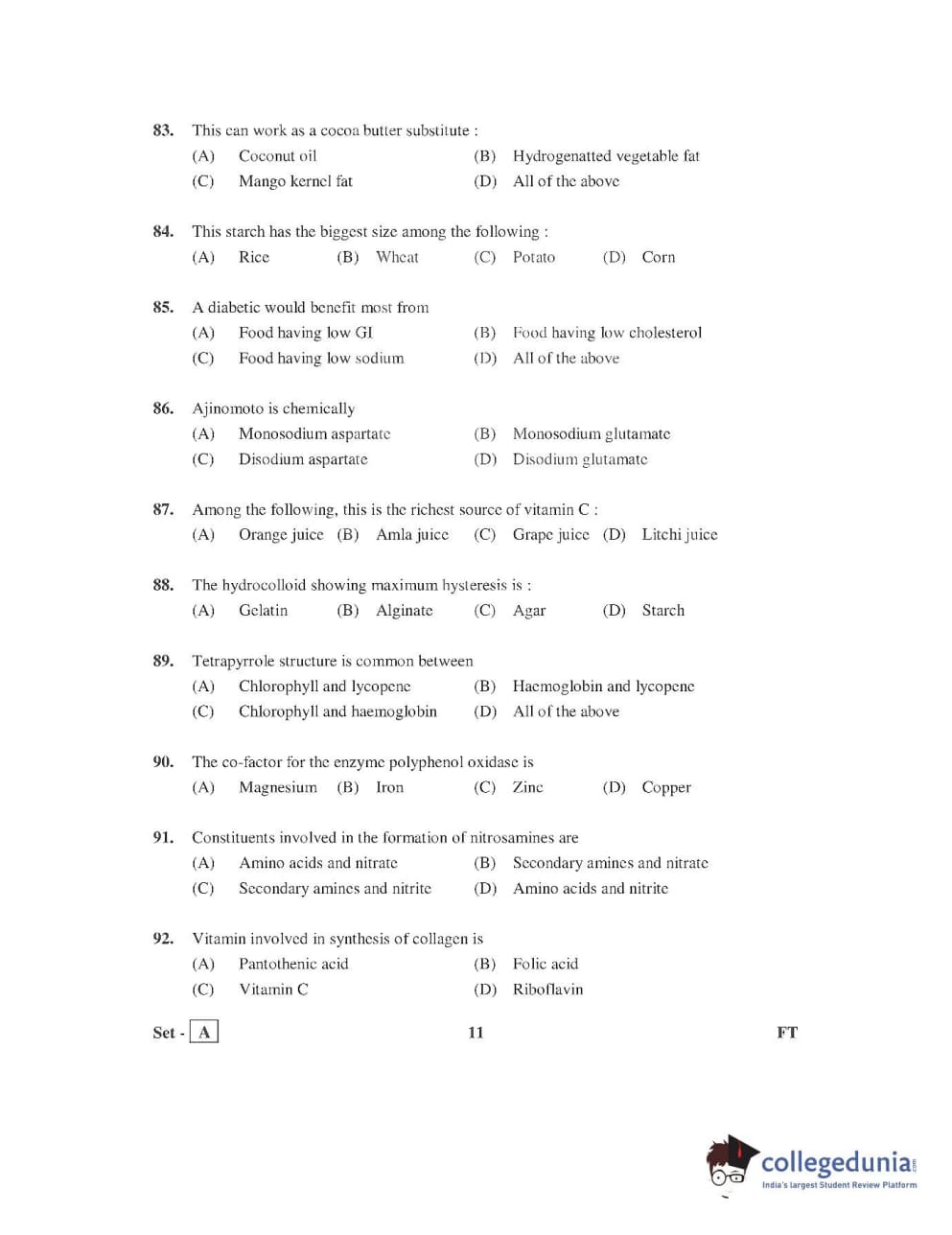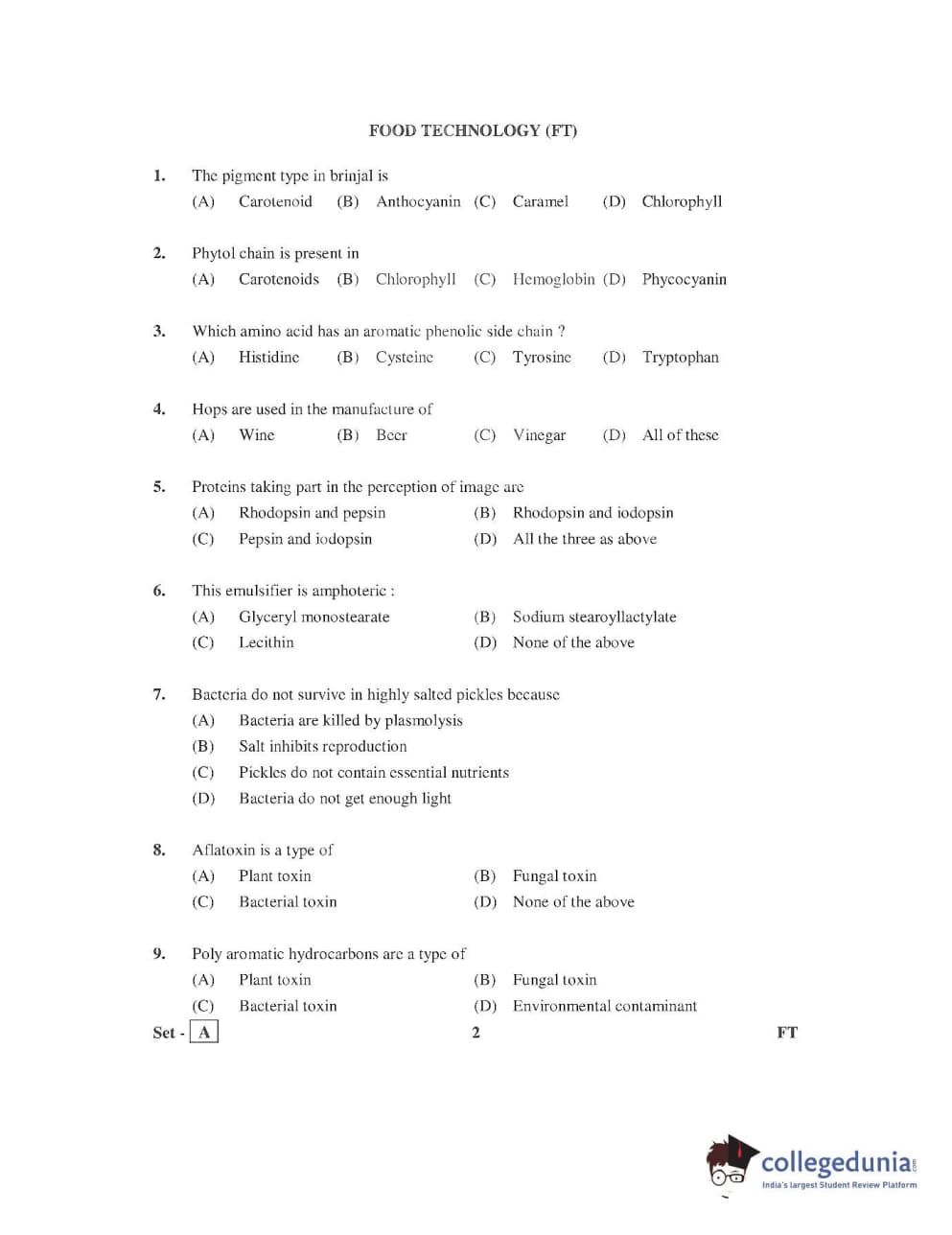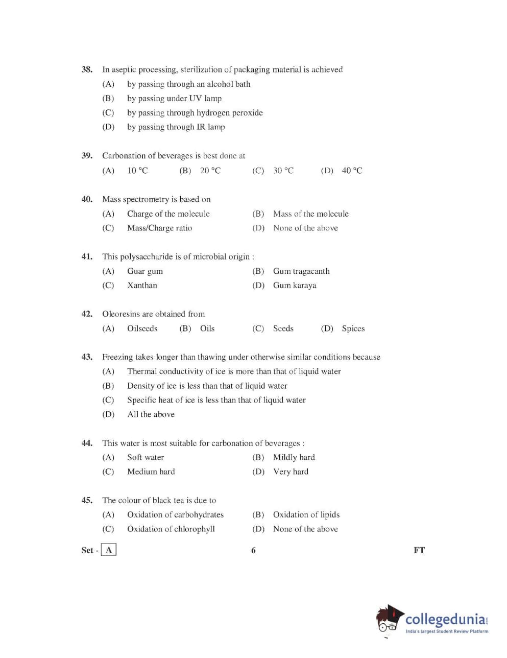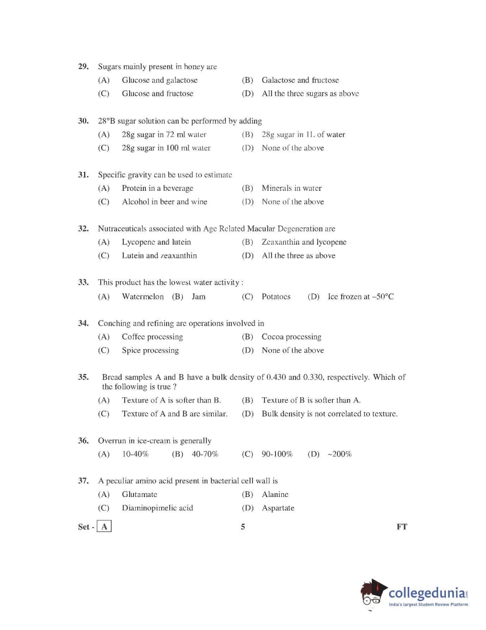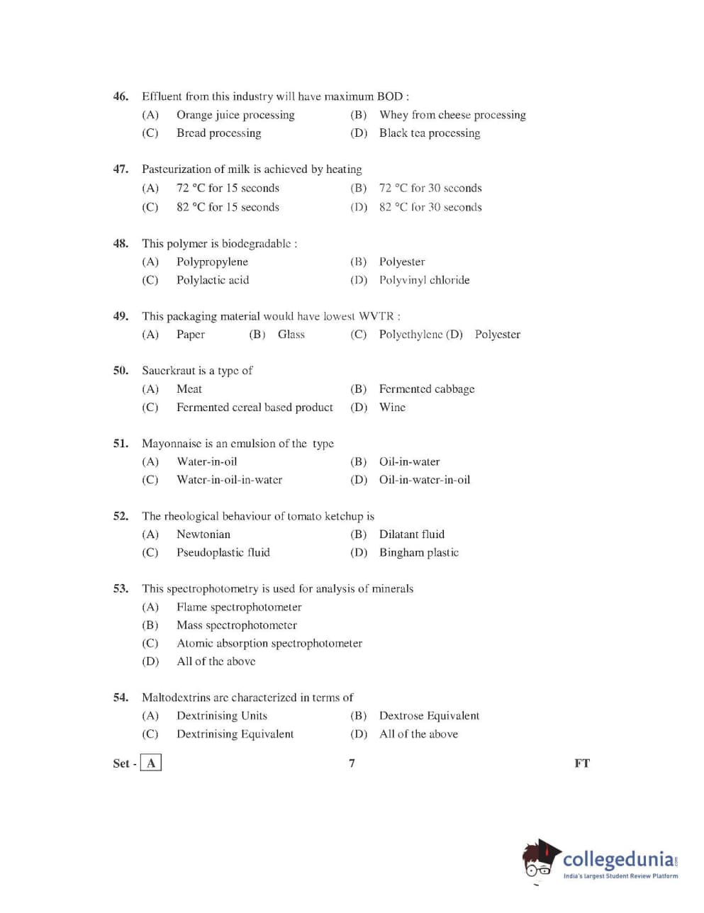 AP PGECET 2016 Food Technology Question Paper with Answer Key PDFs
