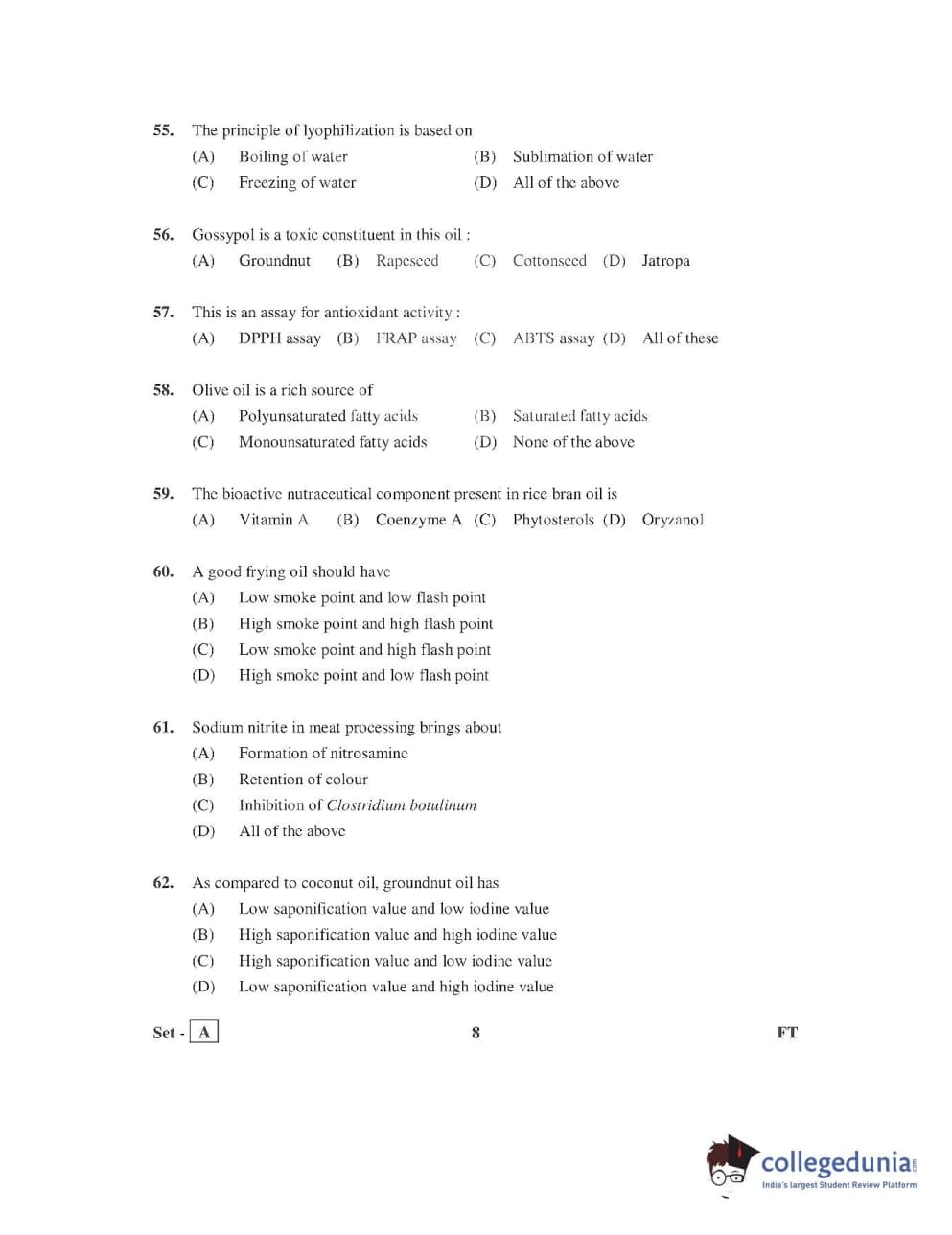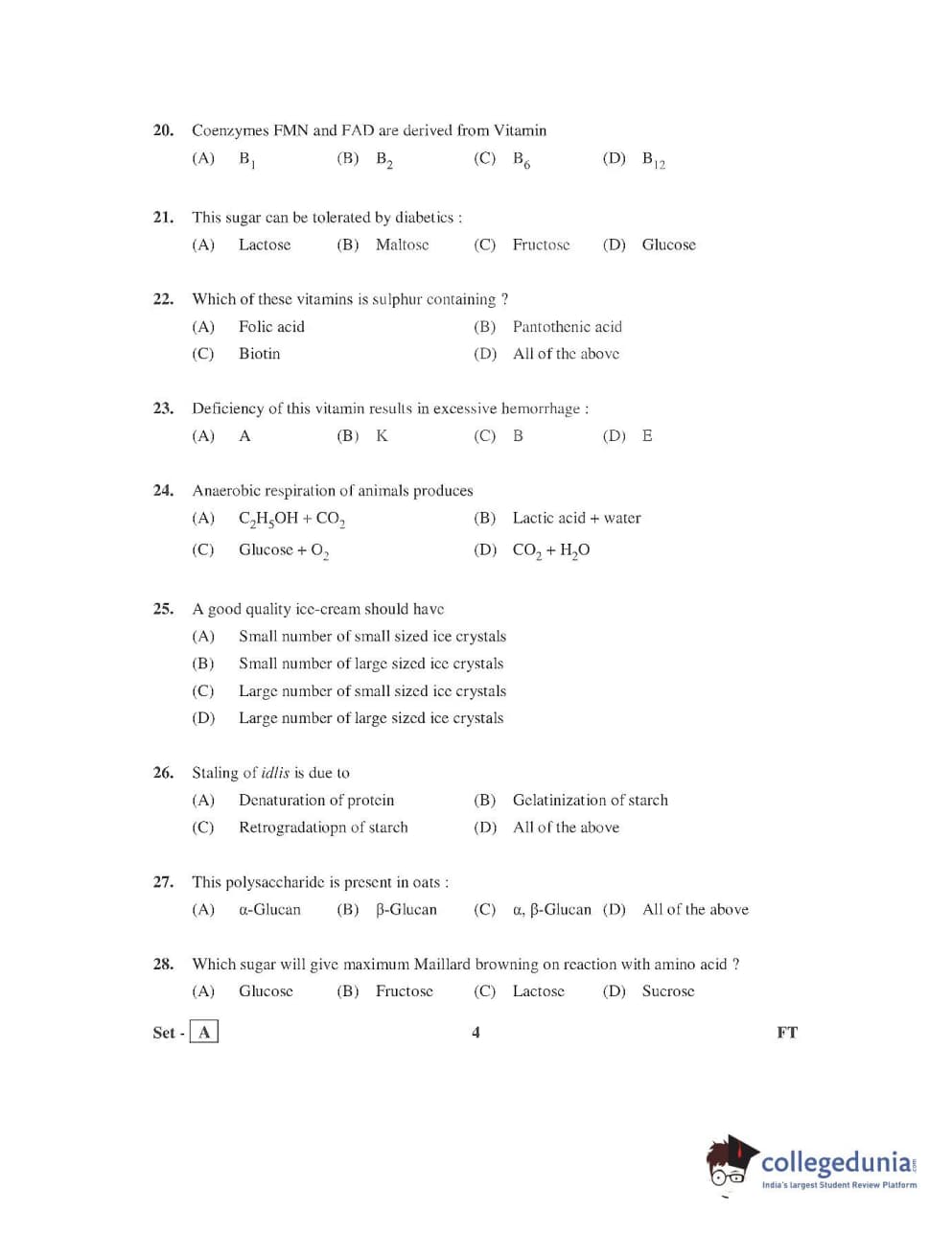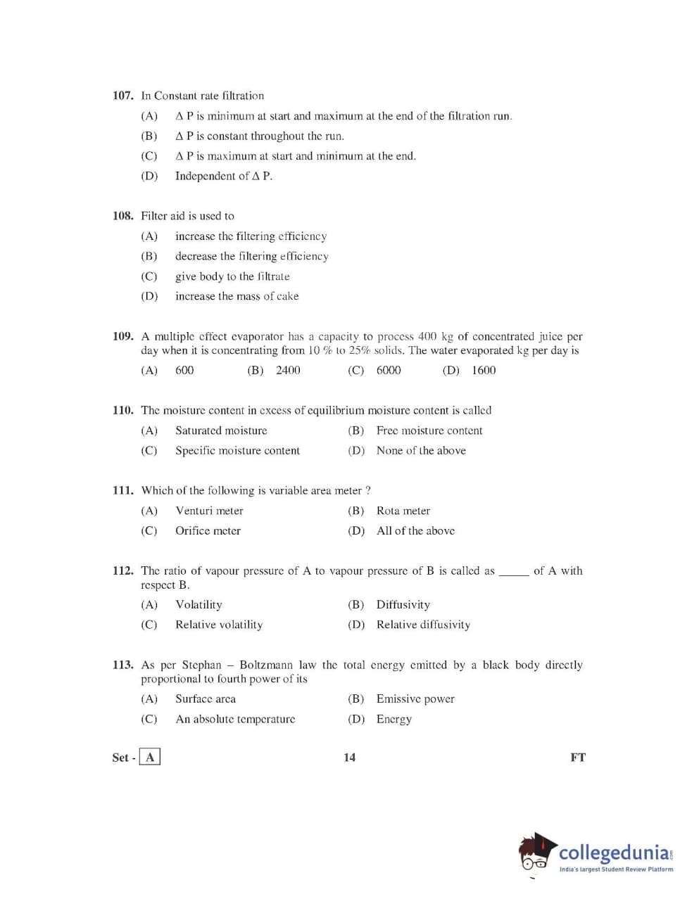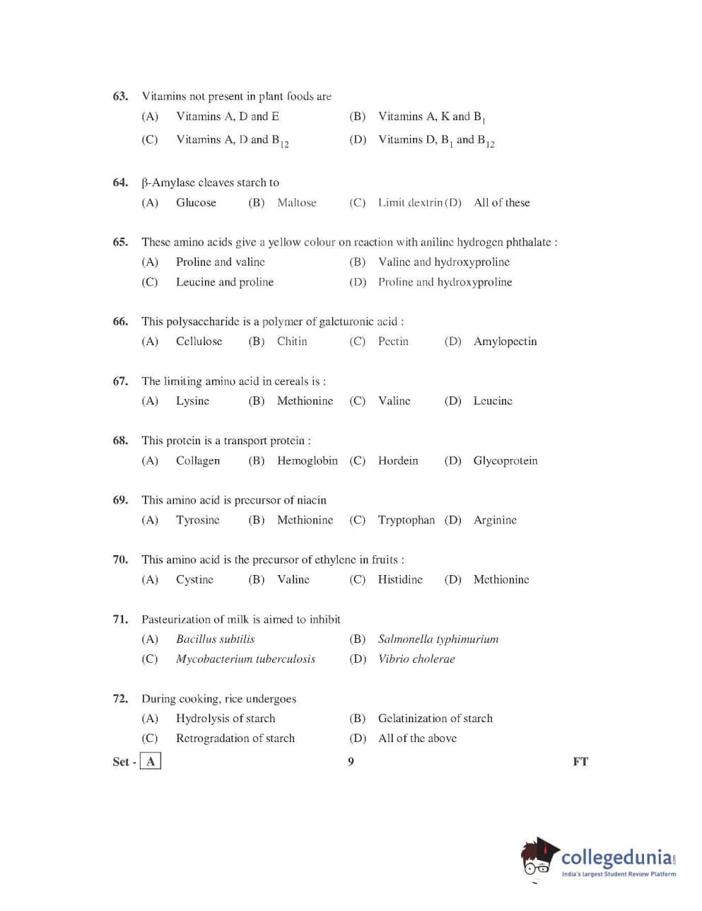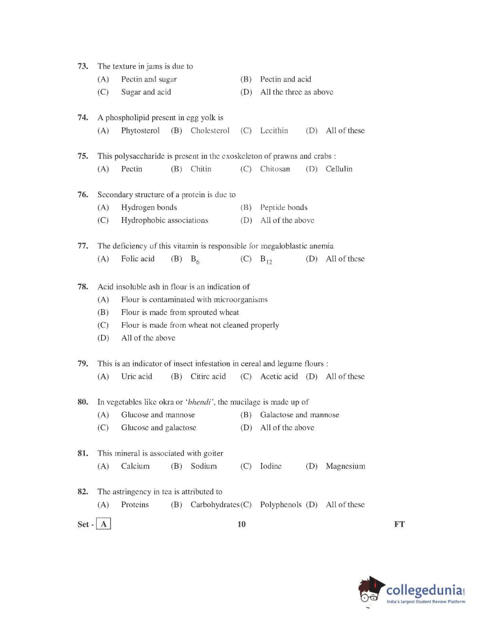 AP PGECET 2016 Food Technology Question Paper with Answer Key PDFs
