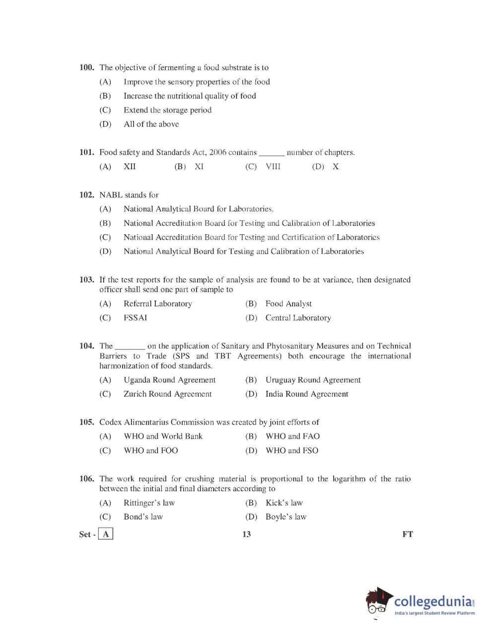 AP PGECET 2016 Food Technology Question paper with answer key pdf is available for download. The exam was successfully organized by Jawaharlal Nehru Technological University, Kakinada (JNTUK). The question paper comprised a total of 120 questions.