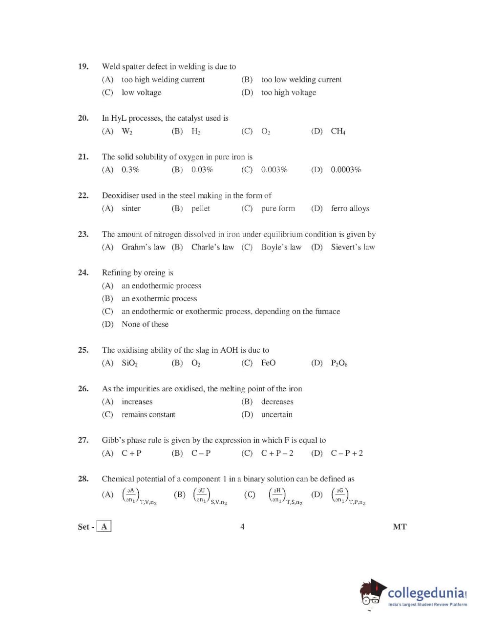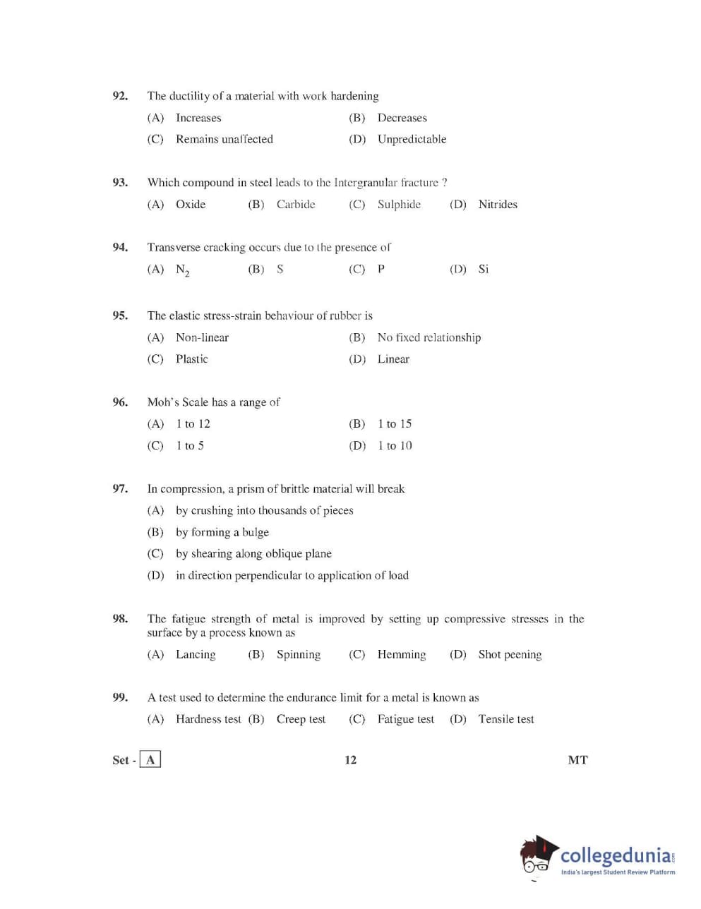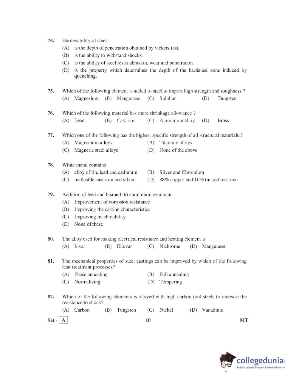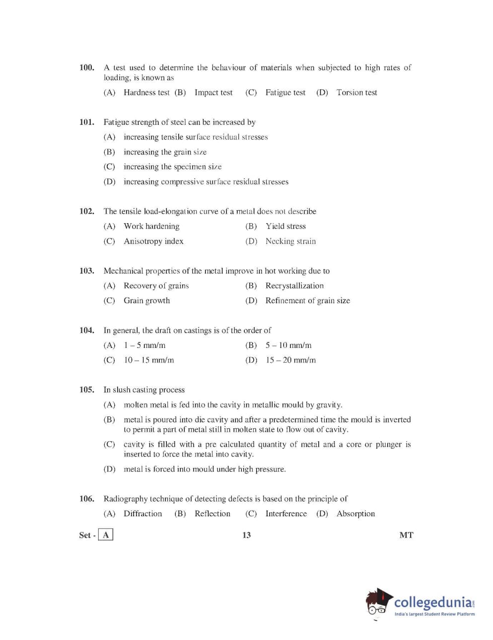 AP PGECET 2016 Metallurgy Question paper with answer key pdf is available for download. The exam was successfully organized by Jawaharlal Nehru Technological University, Kakinada (JNTUK). The question paper comprised a total of 120 questions.