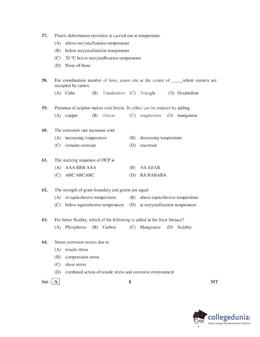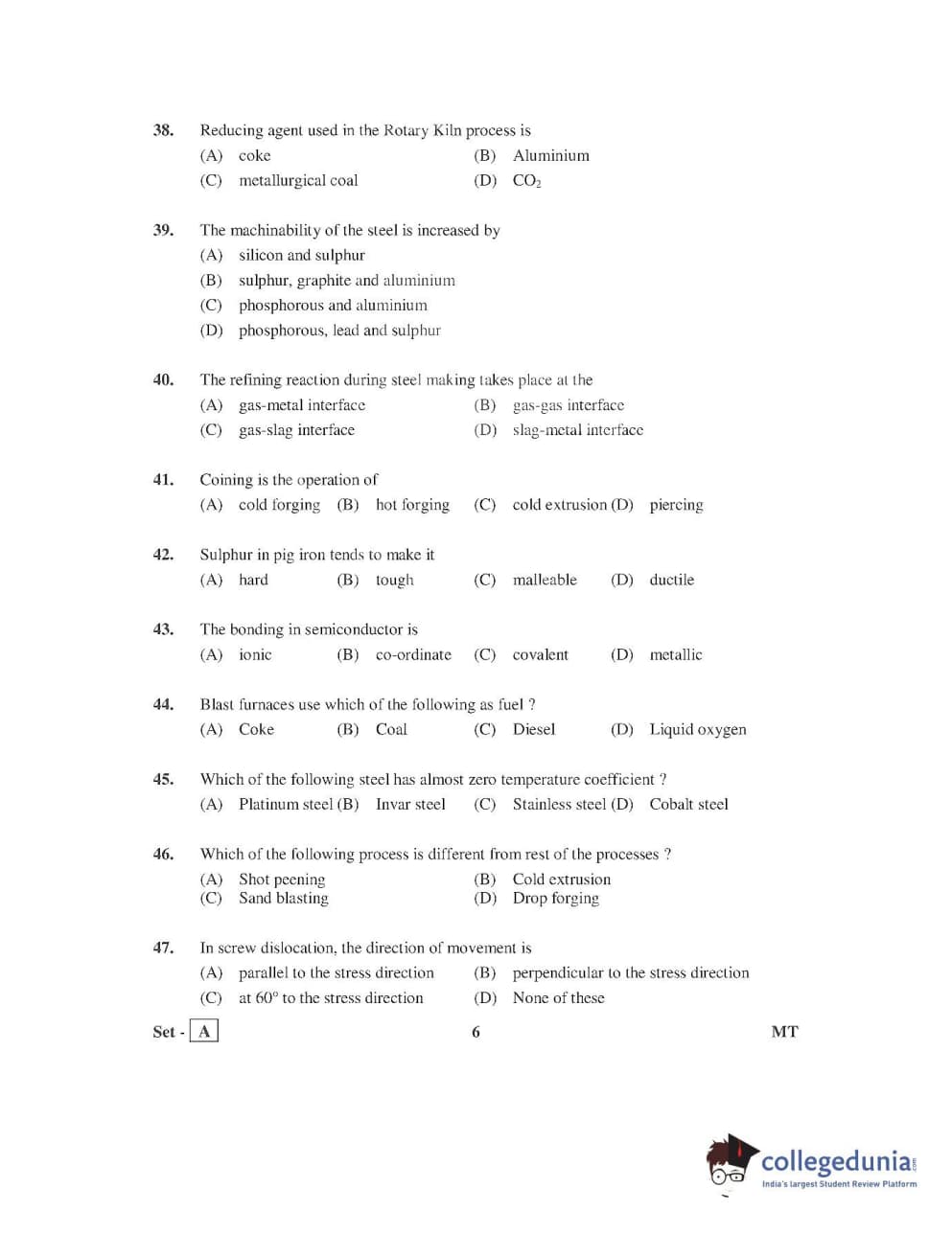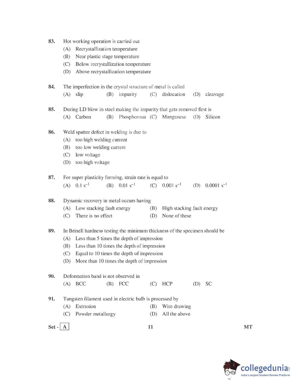 AP PGECET 2016 Metallurgy Question Paper with Answer Key PDFs