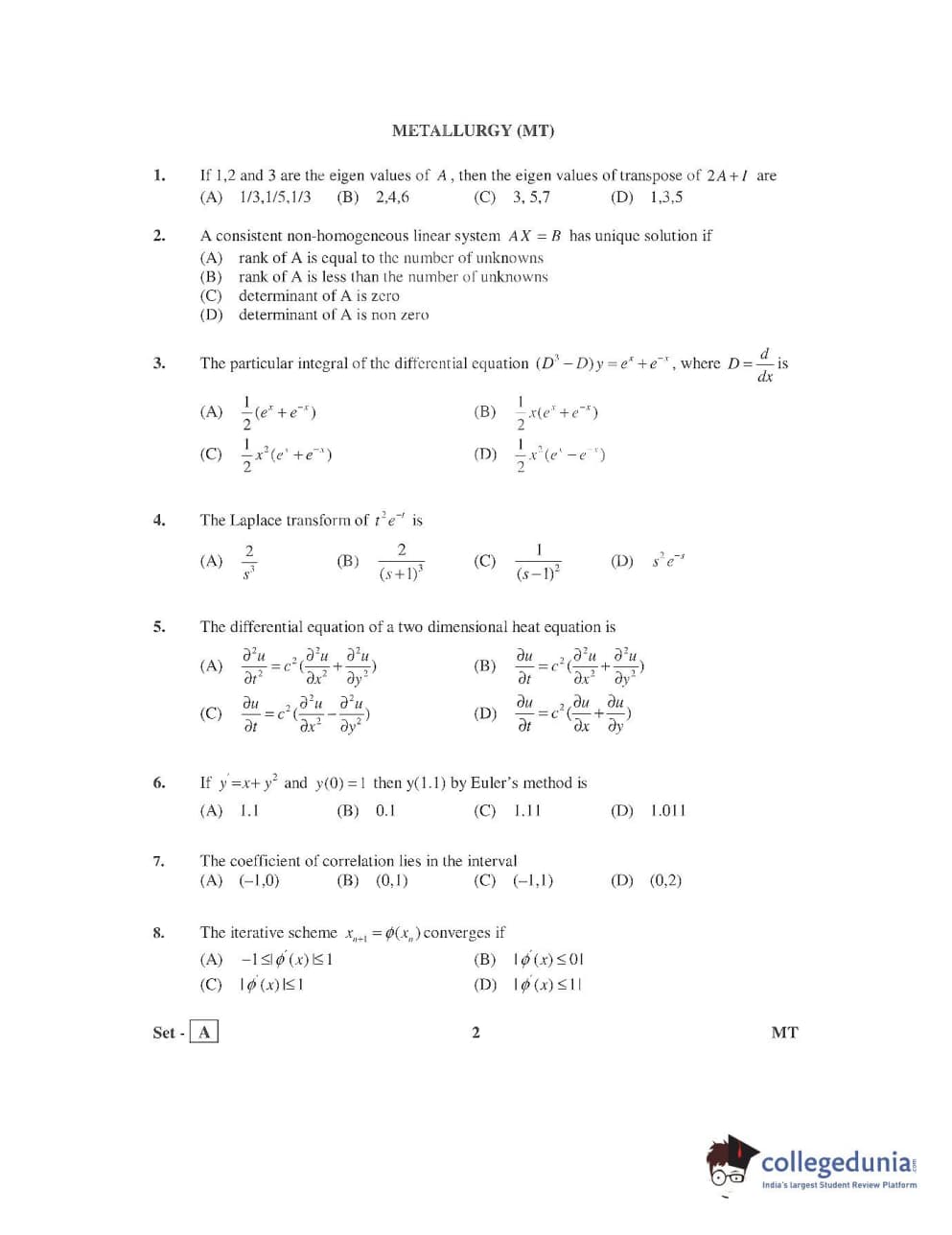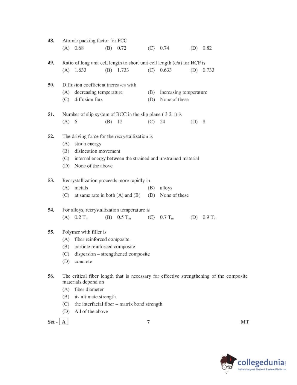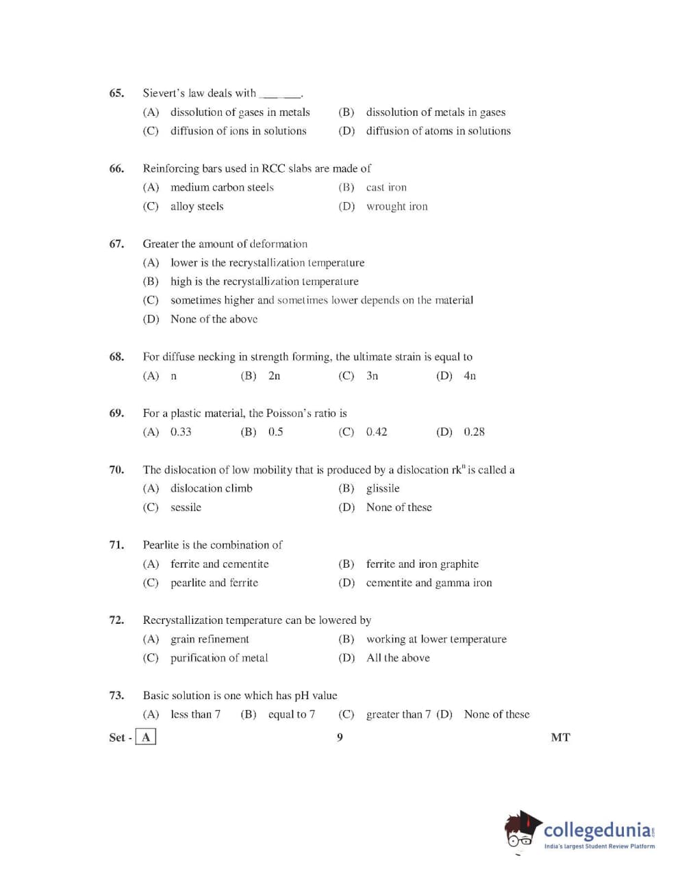 AP PGECET 2016 Metallurgy Question Paper with Answer Key PDFs
