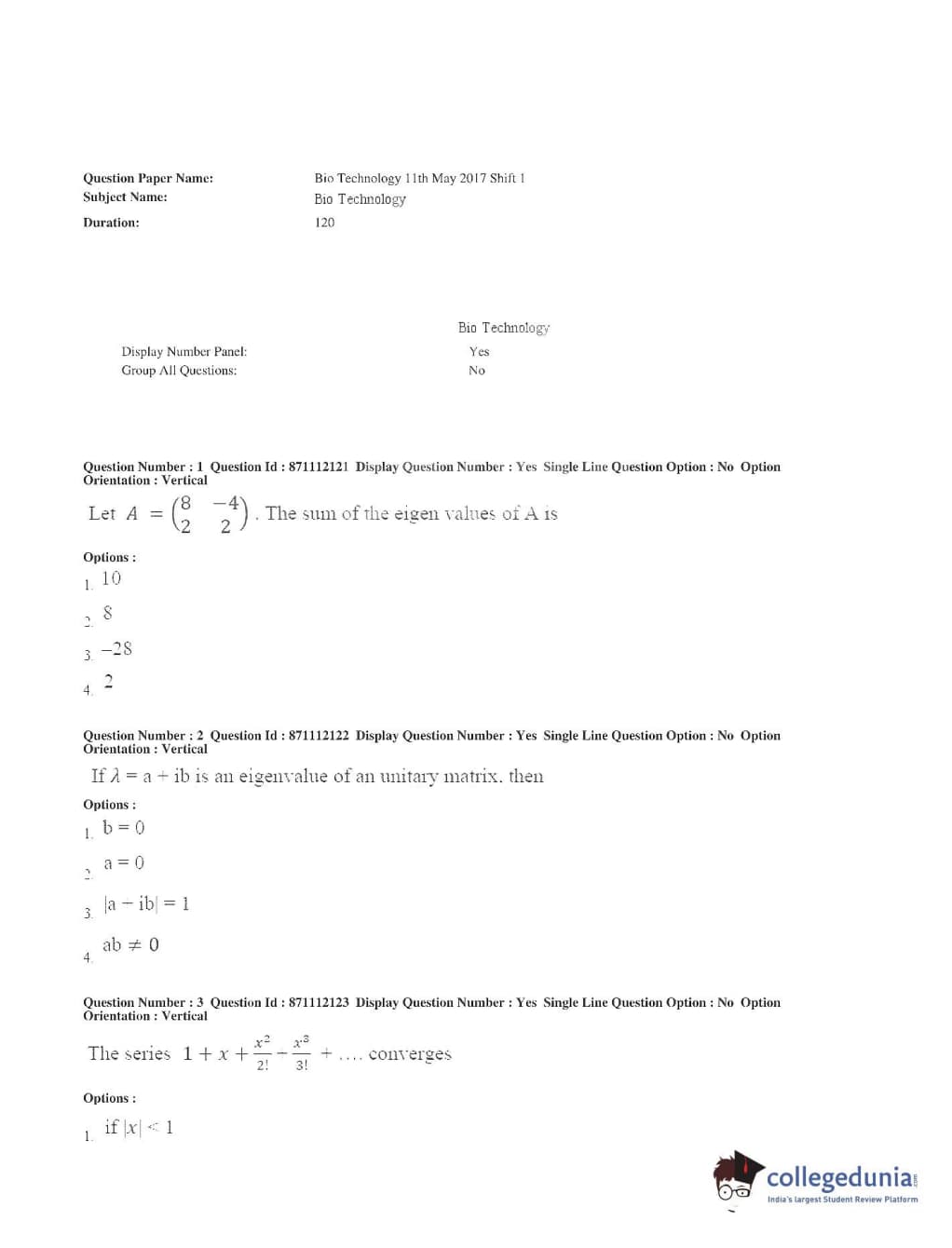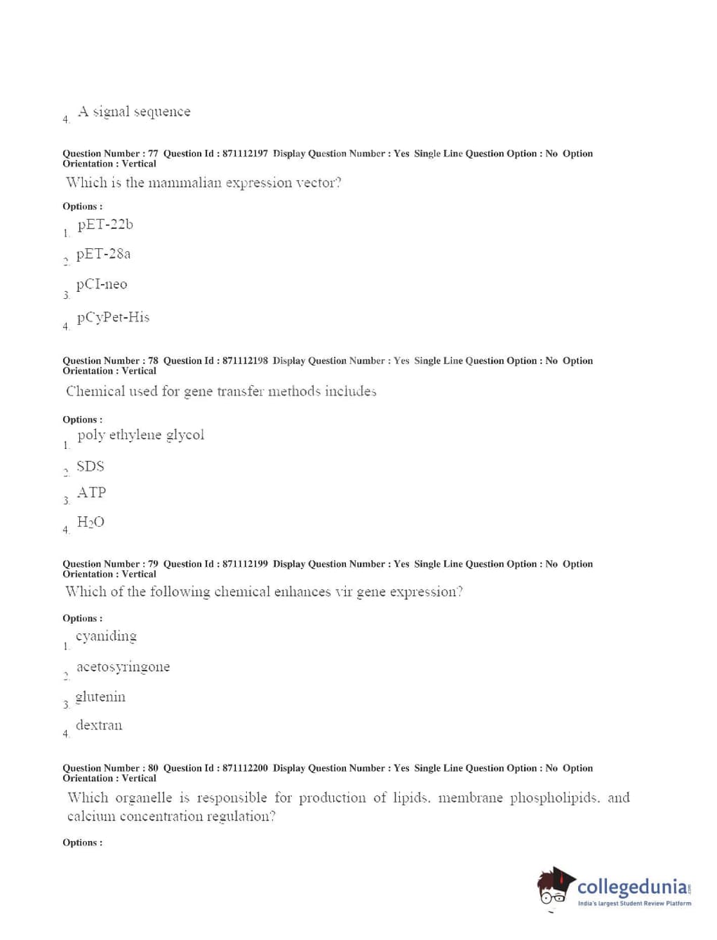 AP PGECET 2017 Bio Technology Question Paper with Answer Key PDFs Forenoon Session