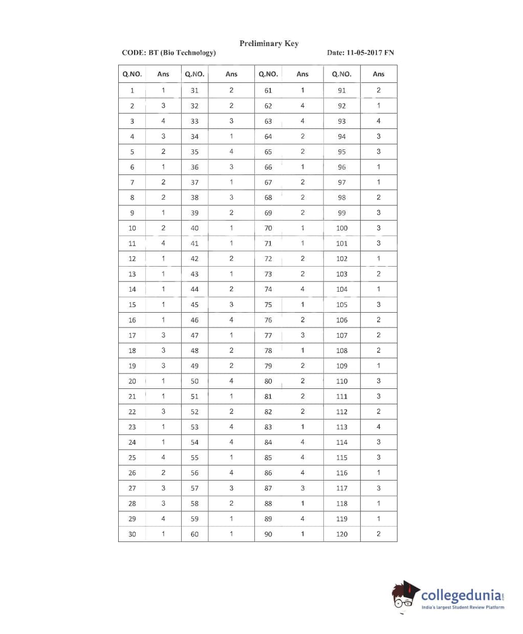 | AP PGECET 2017 Bio Technology Question Paper PDF | AP PGECET 2017 Bio Technology Answer Key PDF |