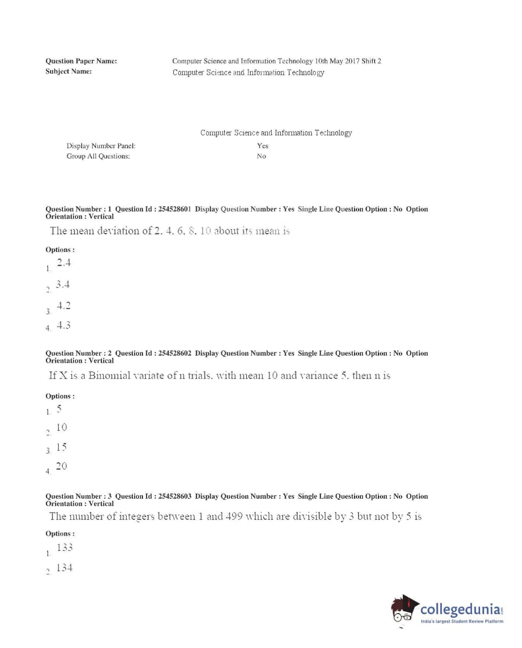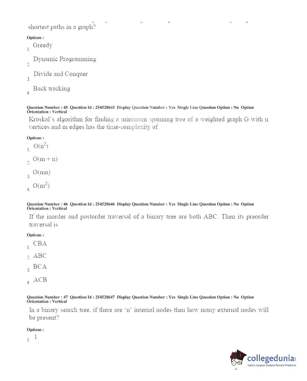 AP PGECET 2017 Computer Science and Information Technology Question Paper with Answer Key PDFs Afternoon Session
