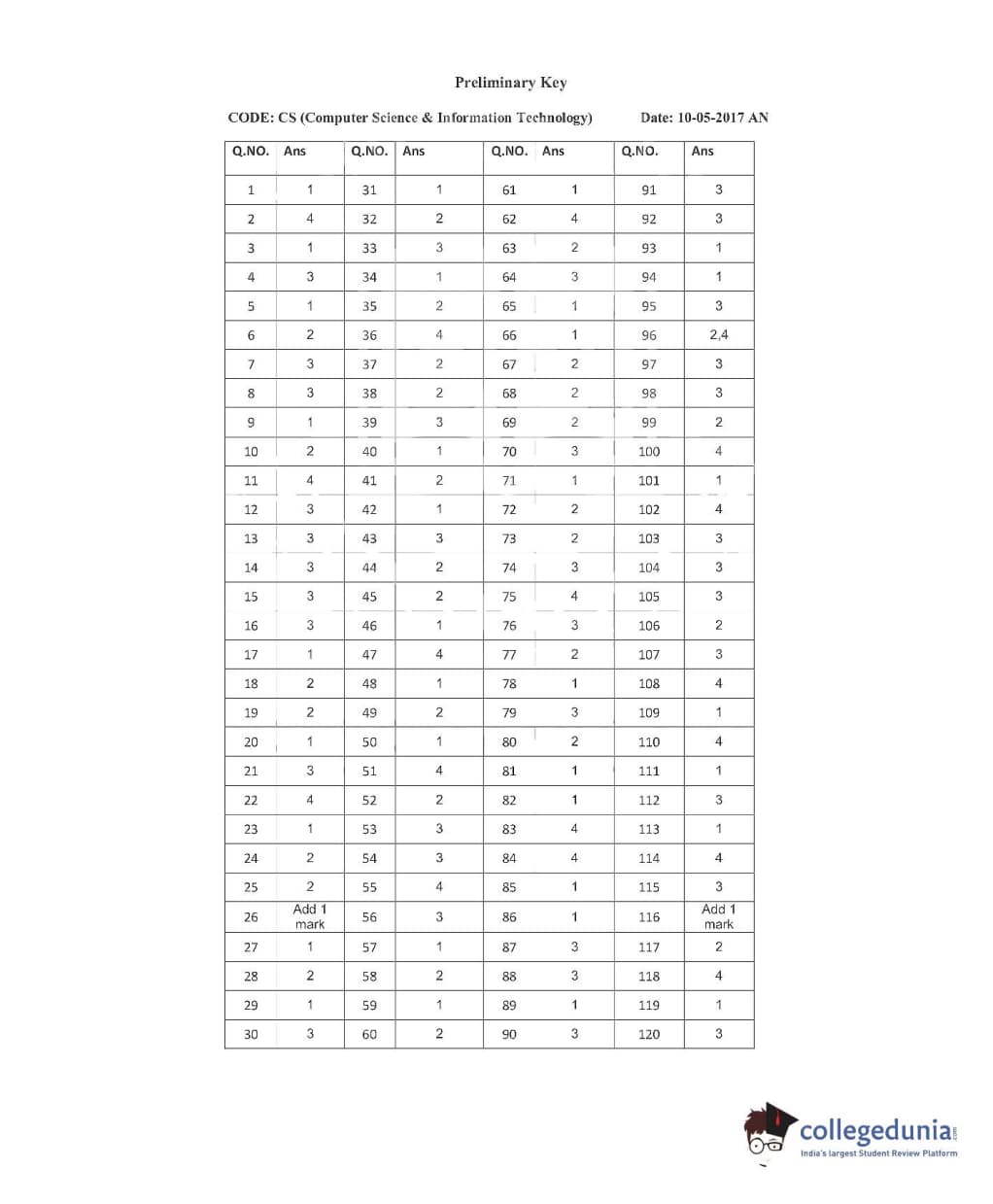 | AP PGECET 2017 Computer Science and Information Technology Question Paper PDF | AP PGECET 2017 Computer Science and Information Technology Answer Key PDF |
