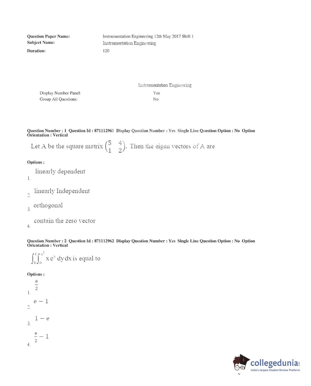 | AP PGECET 2017 Instrumentation Engineering Question Paper PDF | AP PGECET 2017 Instrumentation Engineering Answer Key PDF |