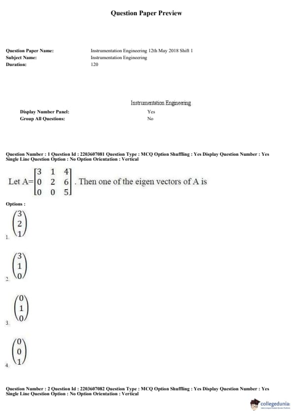 | AP PGECET 2018 Instrumentation Engineering Question Paper PDF | AP PGECET 2018 Instrumentation Engineering Answer Key PDF |
