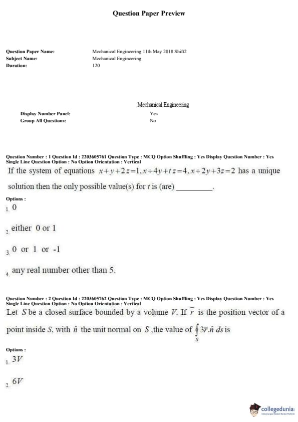 AP PGECET 2018 Mechanical Engineering Question paper with answer key pdf conducted on May 11, 2018 in Afternoon Session 2 PM to 4 PM is available for download. The exam was successfully organized by Andhra University. The question paper comprised a total of 120 questions.
