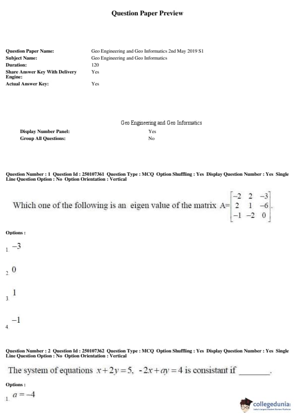 | AP PGECET 2019 Geo Engineering and Geo Informatics Question Paper PDF | AP PGECET 2019 Geo Engineering and Geo Informatics Answer Key PDF |