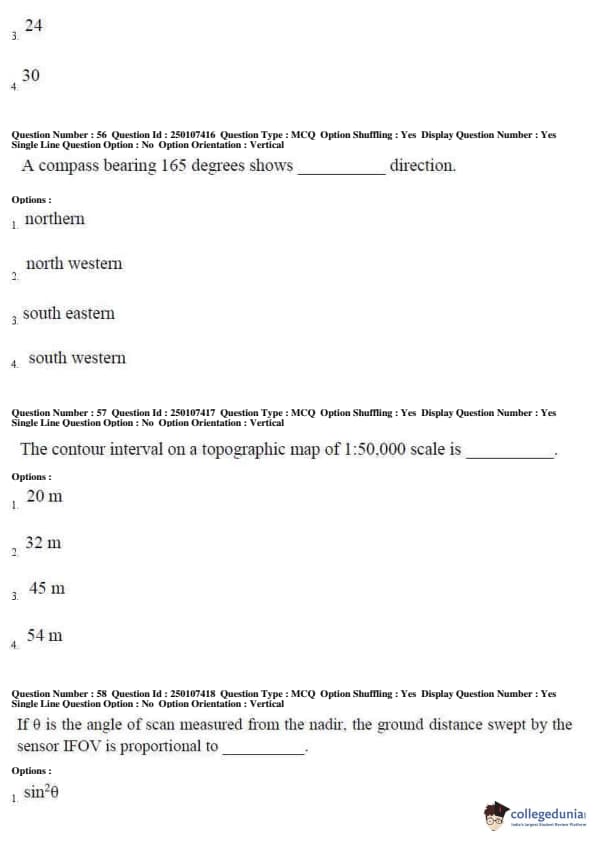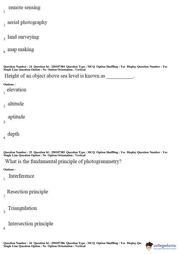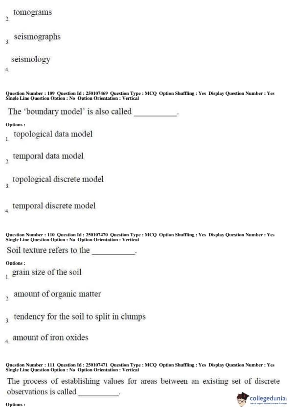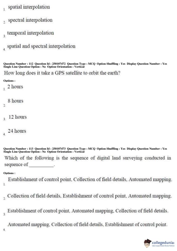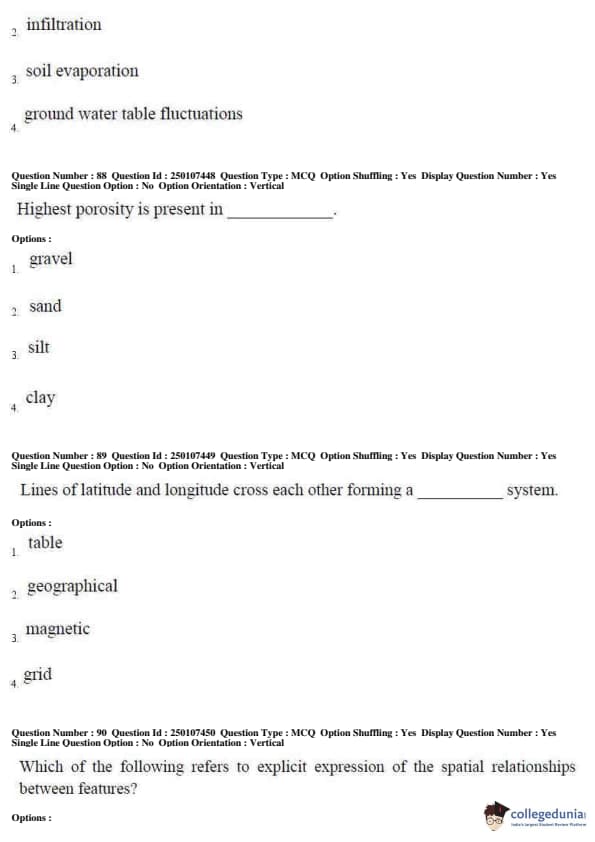 AP PGECET 2019 Geo Engineering and Geo Informatics Question Paper with Answer Key PDFs for Forenoon Session