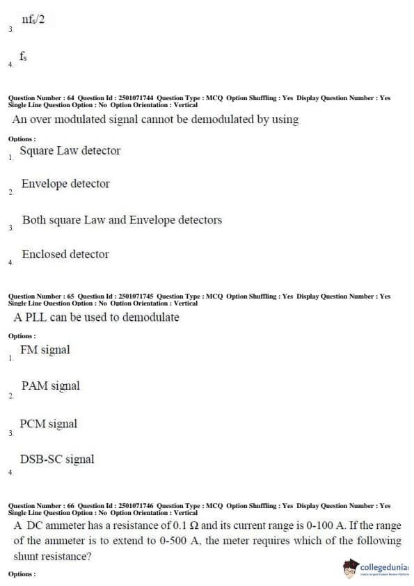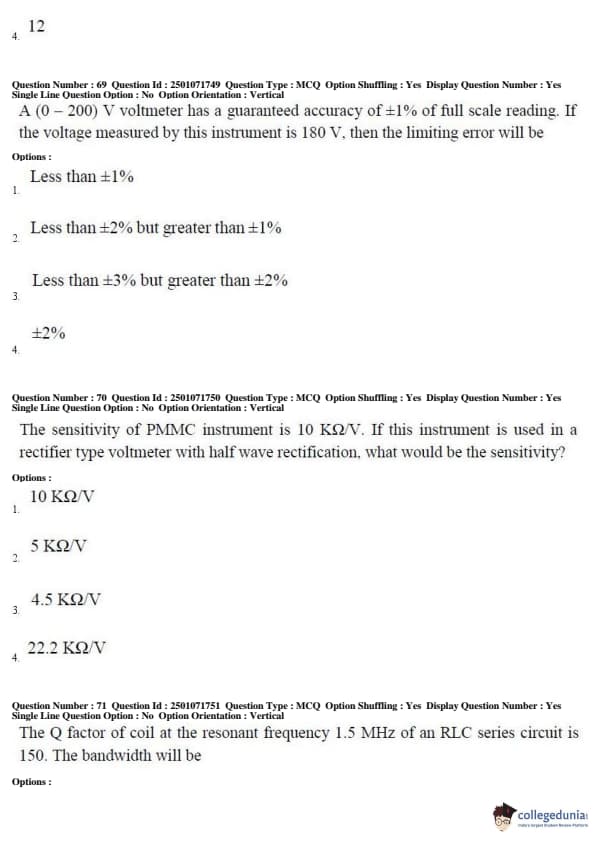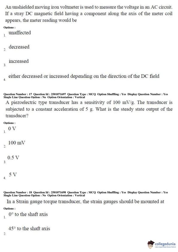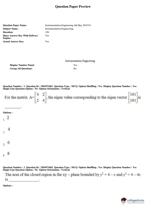 | AP PGECET 2019 Instrumentation Engineering Question Paper PDF | AP PGECET 2019 Instrumentation Engineering Answer Key PDF |