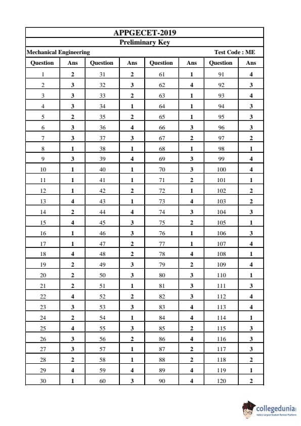 | AP PGECET 2019 Mechanical Engineering Question Paper PDF | AP PGECET 2019 Mechanical Engineering Answer Key PDF |