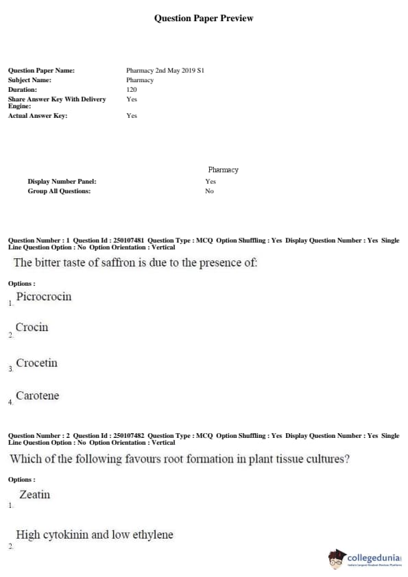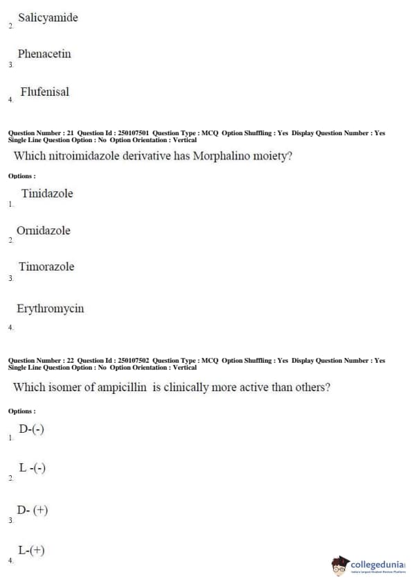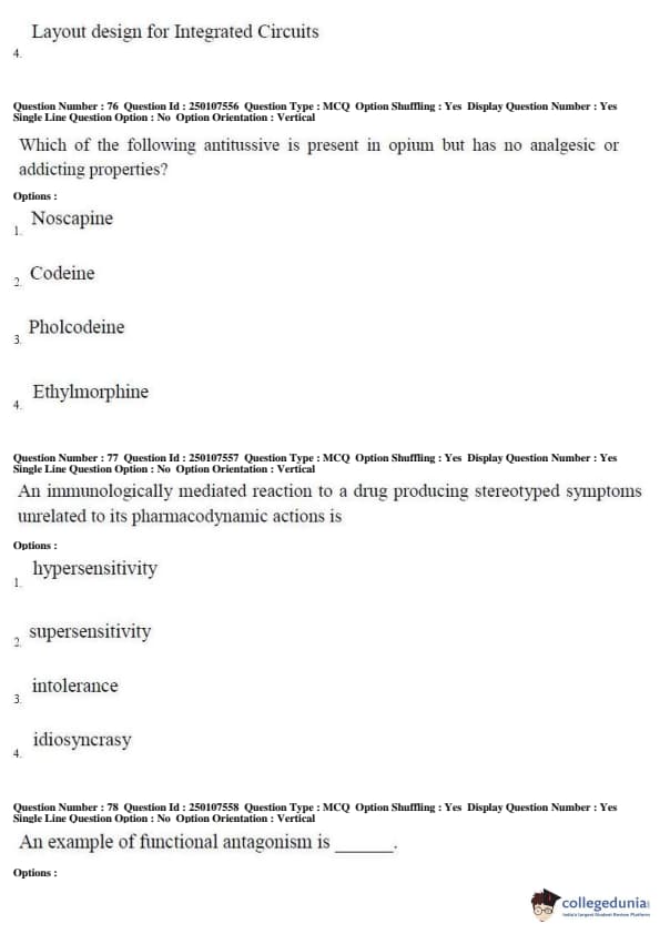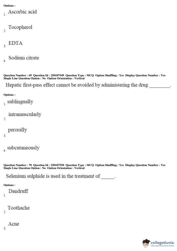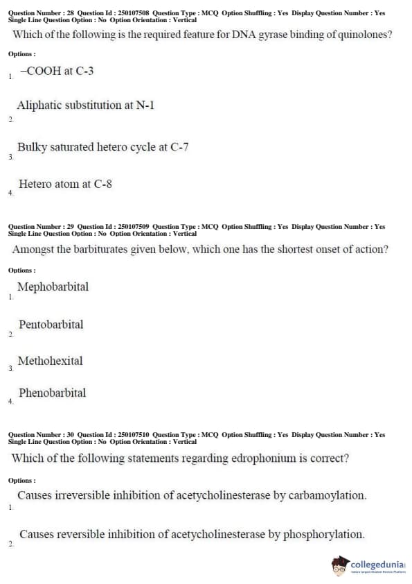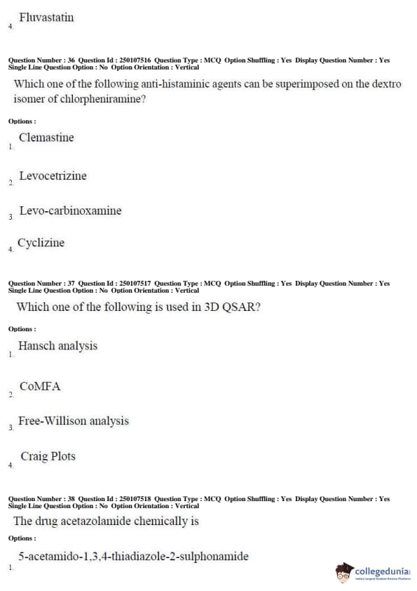 AP PGECET 2019 Pharmacy Question Paper with Answer Key PDFs for Forenoon Session