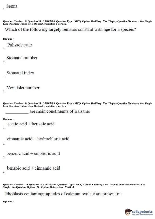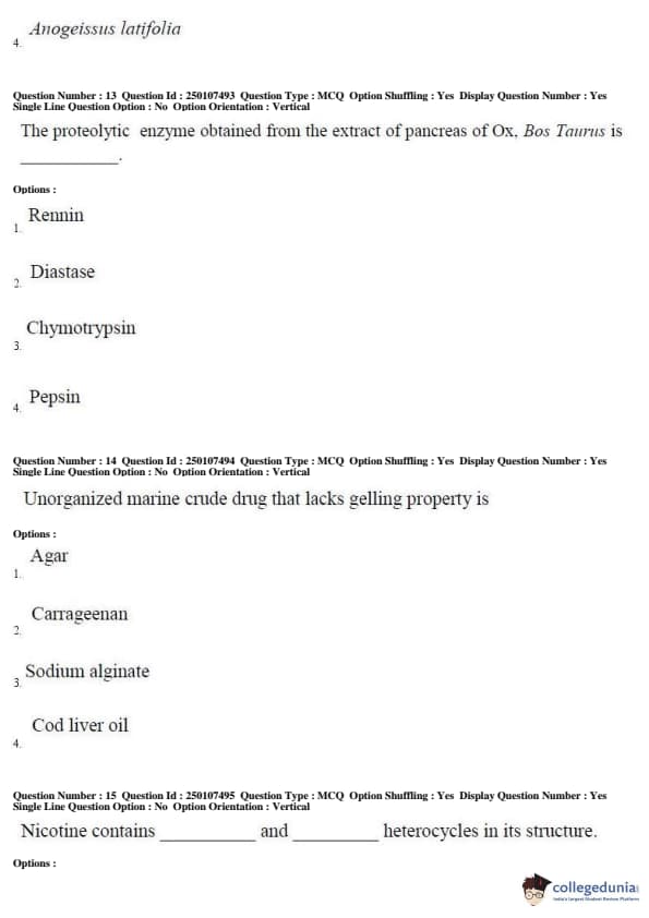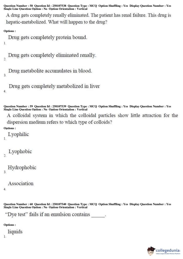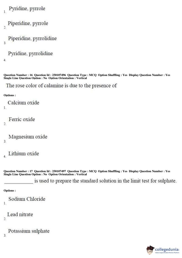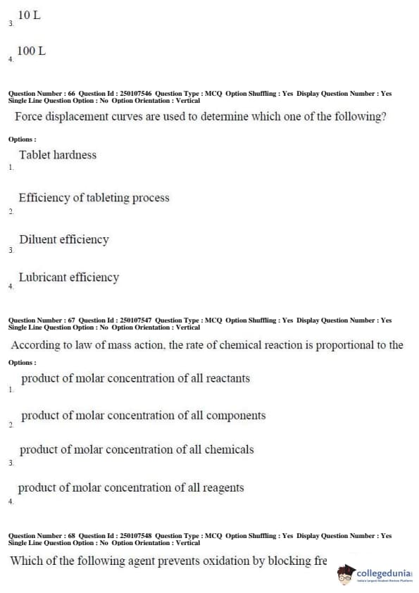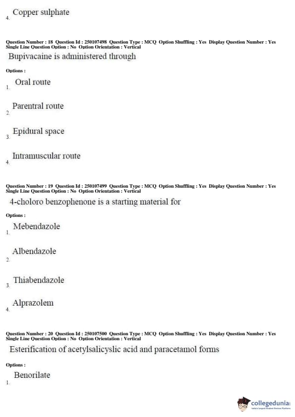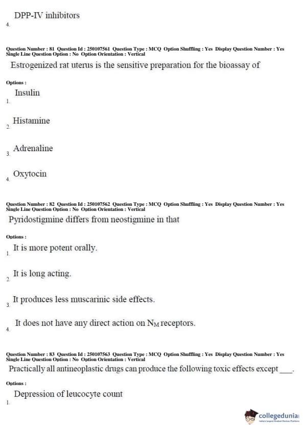 AP PGECET 2019 Pharmacy Question Paper with Answer Key PDFs for Forenoon Session