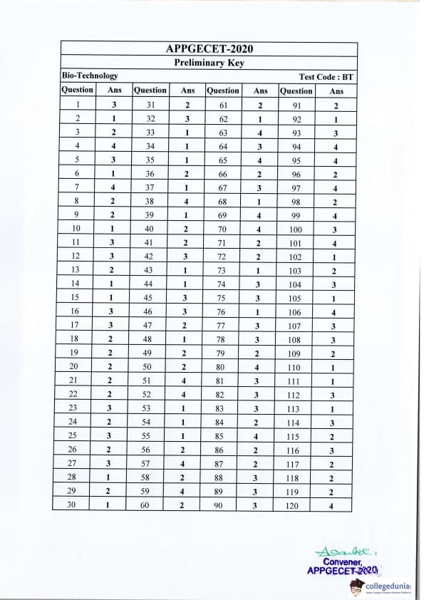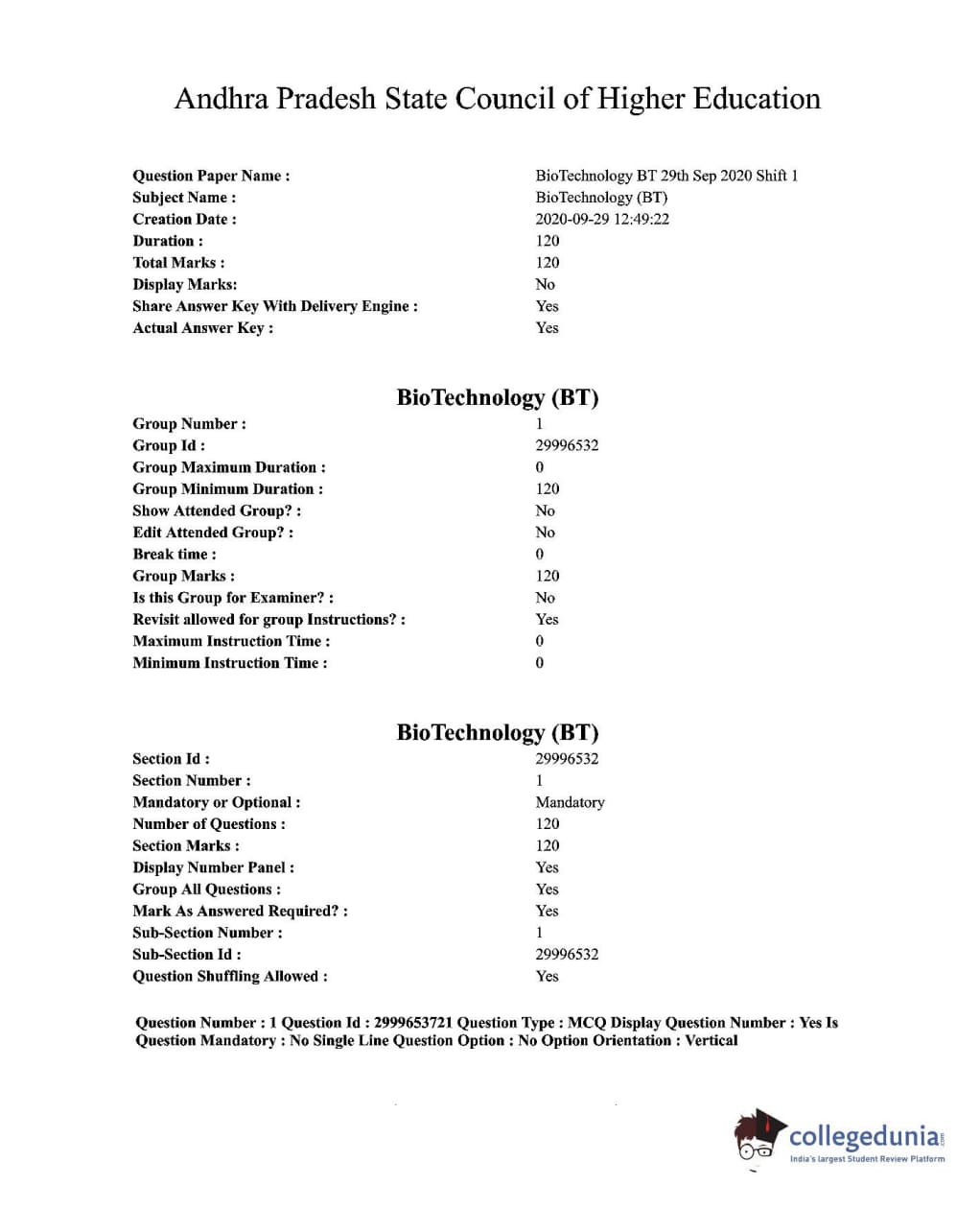 | AP PGECET 2020 Bio Technology Question Paper PDF | AP PGECET 2020 Bio Technology Answer Key PDF |