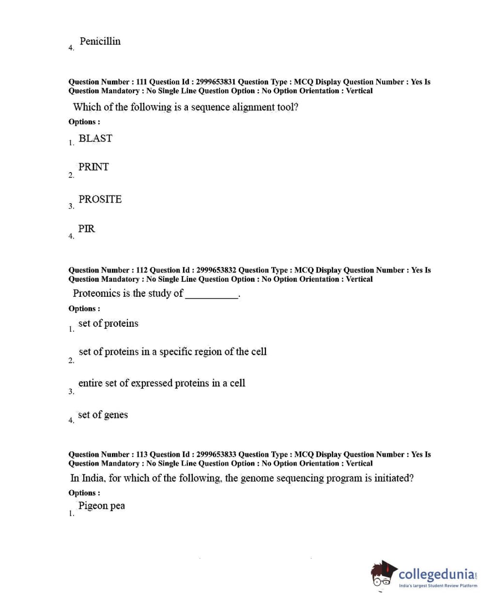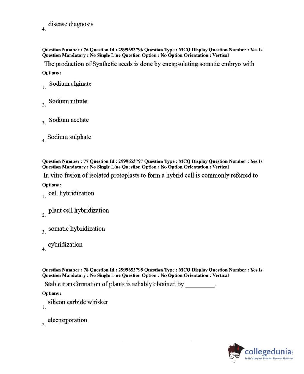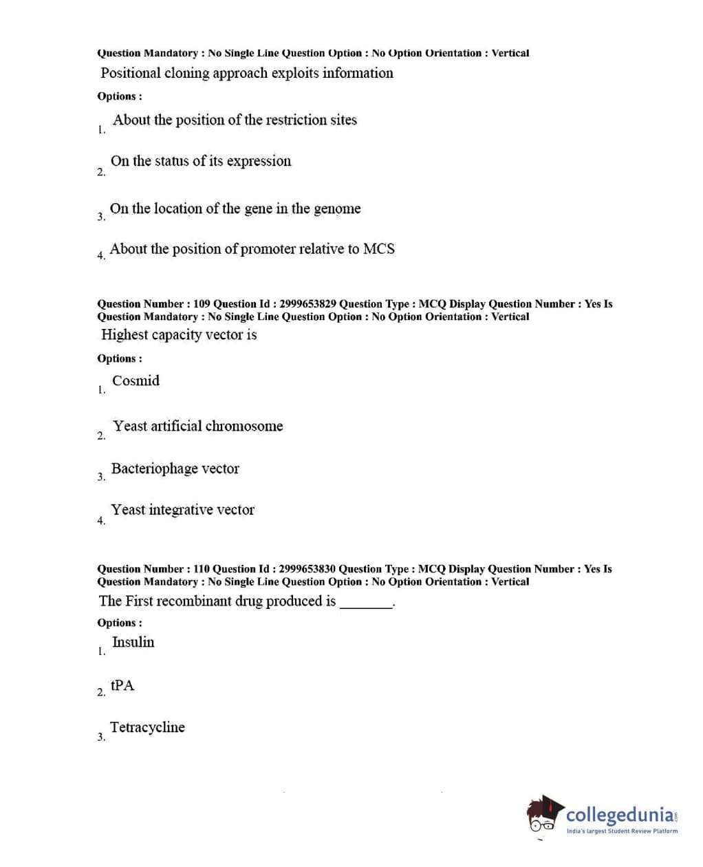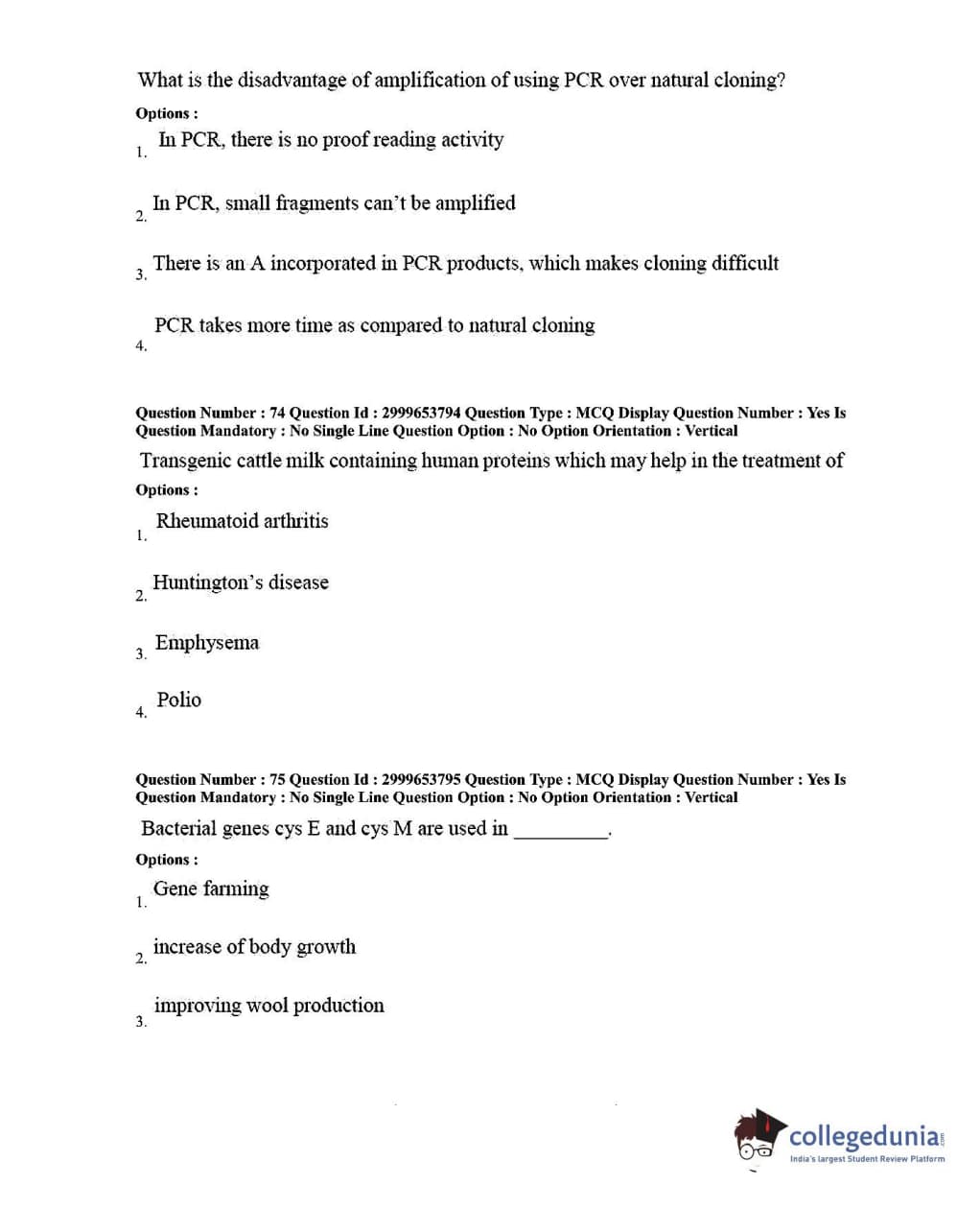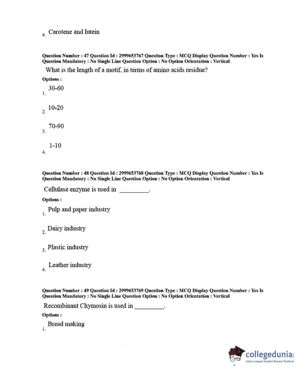 AP PGECET 2020 Bio Technology Question Paper with Answer Key PDFs for Forenoon Session