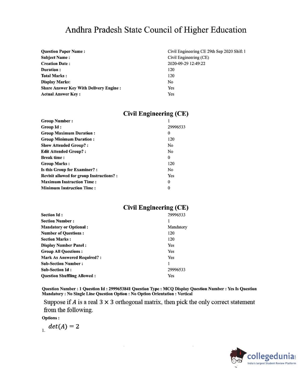 AP PGECET 2020 Civil Engineering Question paper with answer key pdf conducted on September 29, 2020 in Forenoon Session 10 AM to 12 PM is available for download. The exam was successfully organized by Andhra University. The question paper comprised a total of 120 questions.