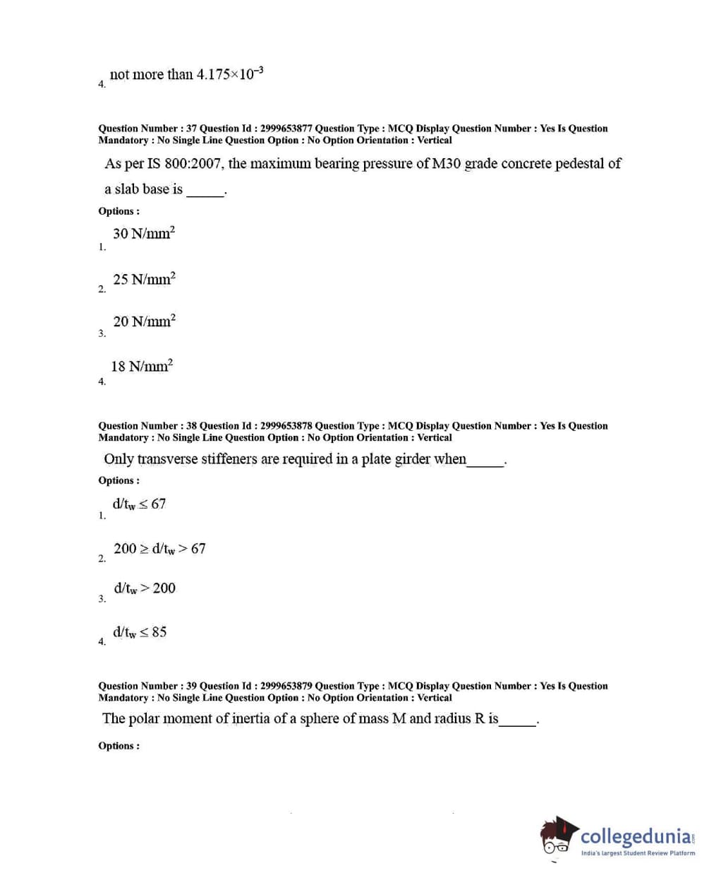 AP PGECET 2020 Civil Engineering Question Paper with Answer Key PDFs for Forenoon Session