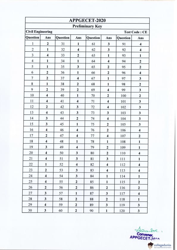| AP PGECET 2020 Civil Engineering Question Paper PDF | AP PGECET 2020 Civil Engineering Answer Key PDF |
