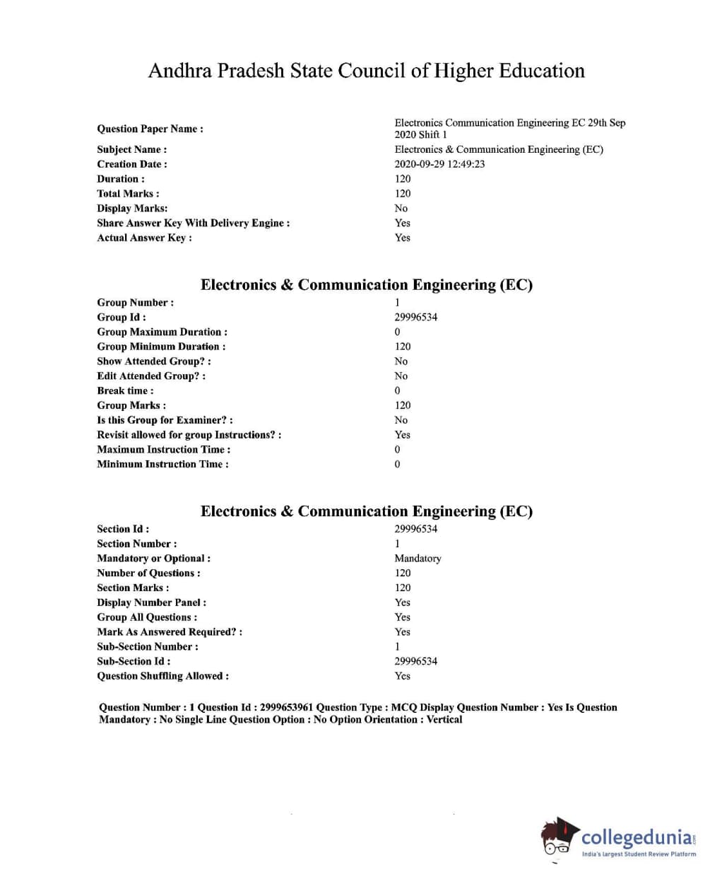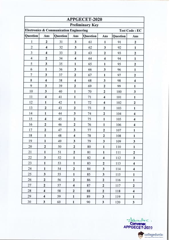 | AP PGECET 2020 Electronics and Communication Engineering Question Paper PDF | AP PGECET 2020 Electronics and Communication Engineering Answer Key PDF |