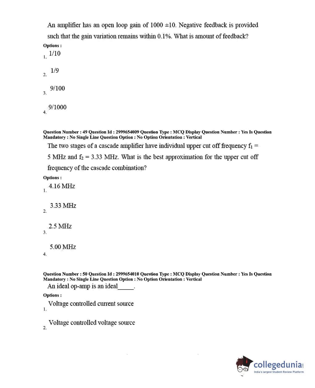 AP PGECET 2020 Electronics and Communication Engineering Question Paper with Answer Key PDFs for Forenoon Session