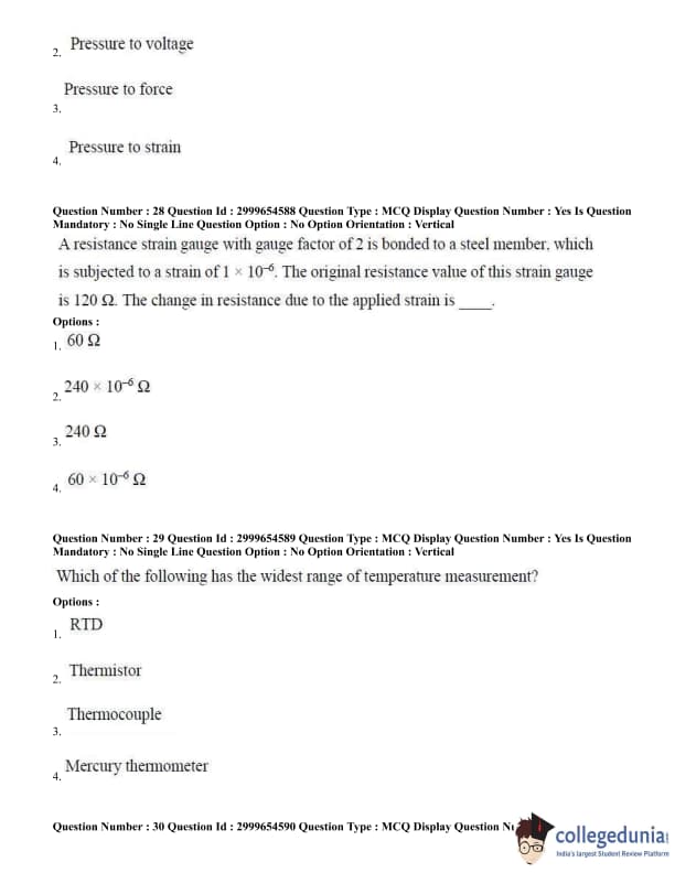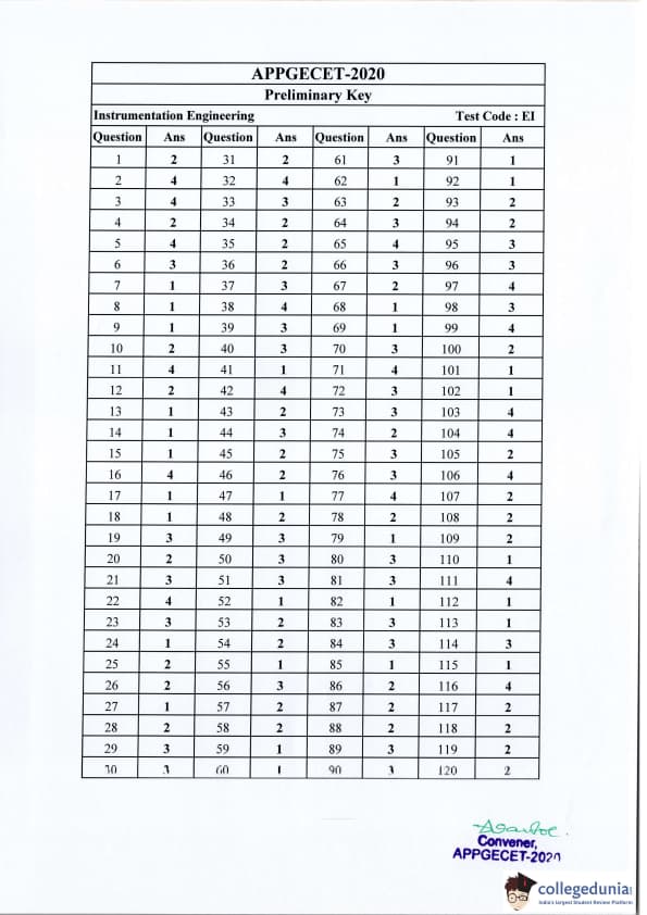 | AP PGECET 2020 Instrumentation Engineering Question Paper PDF | AP PGECET 2020 Instrumentation Engineering Answer Key PDF |