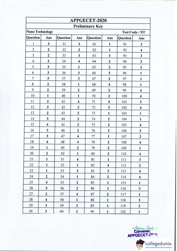 | AP PGECET 2020 Nano Technology Question Paper PDF | AP PGECET 2020 Nano Technology Answer Key PDF |