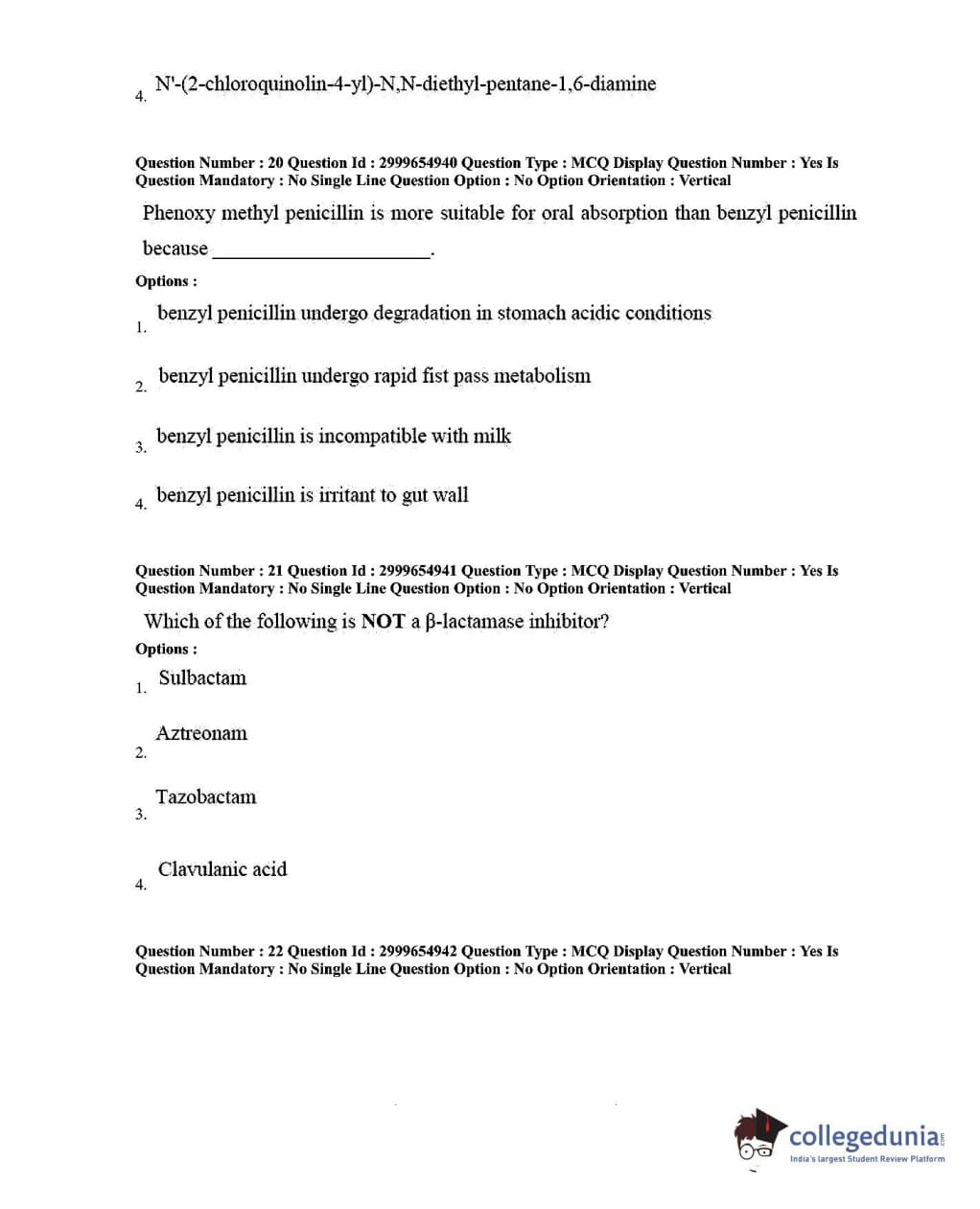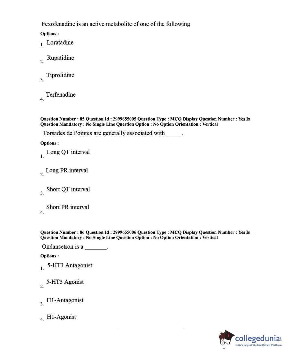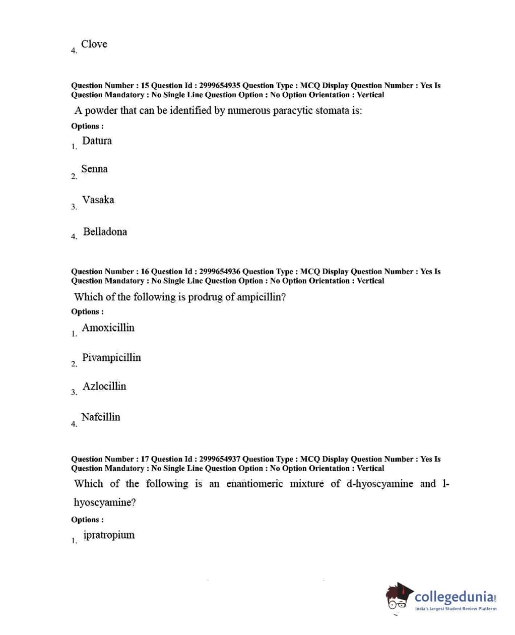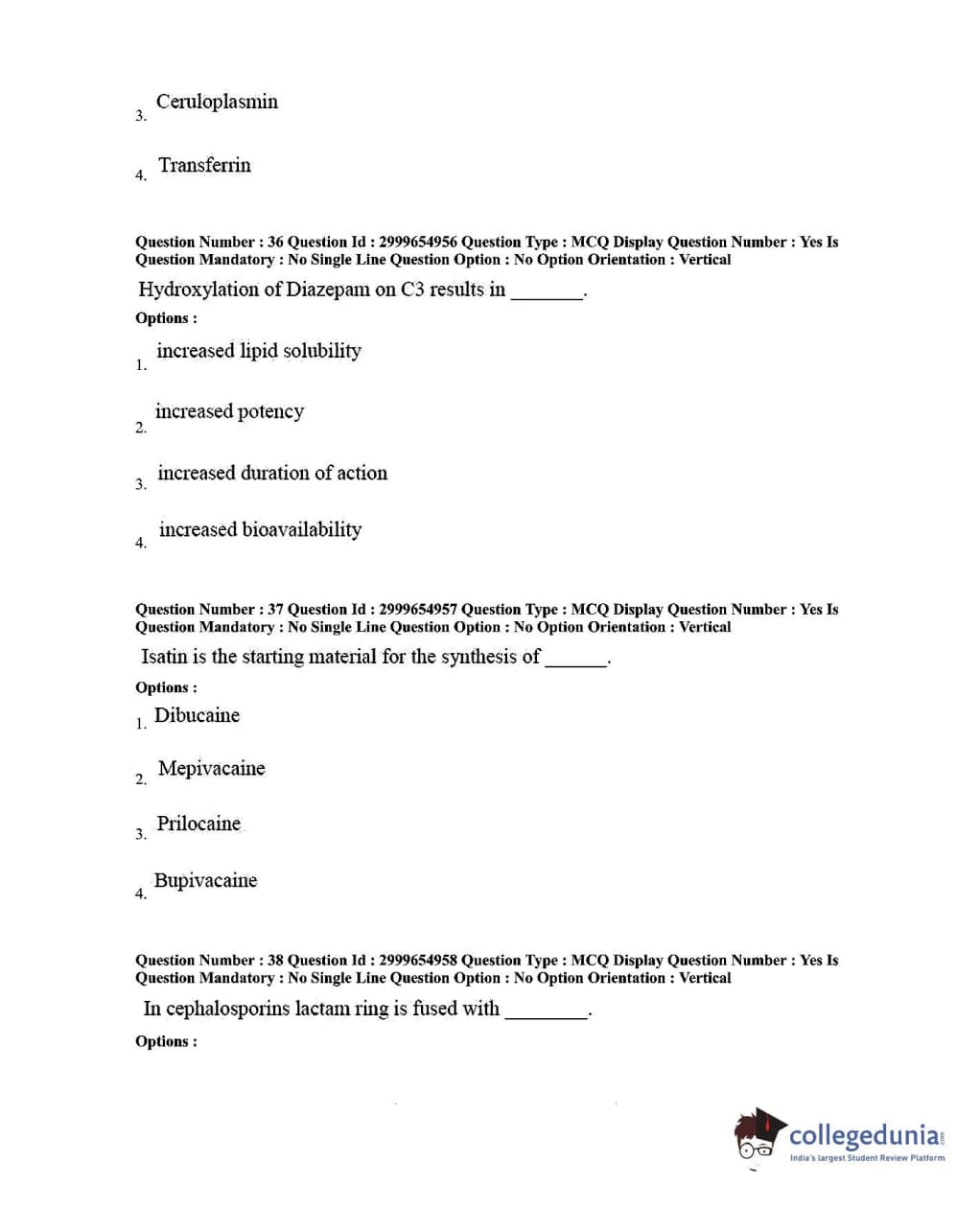 AP PGECET 2020 Pharmacy Question Paper with Answer Key PDFs for Afternoon Session