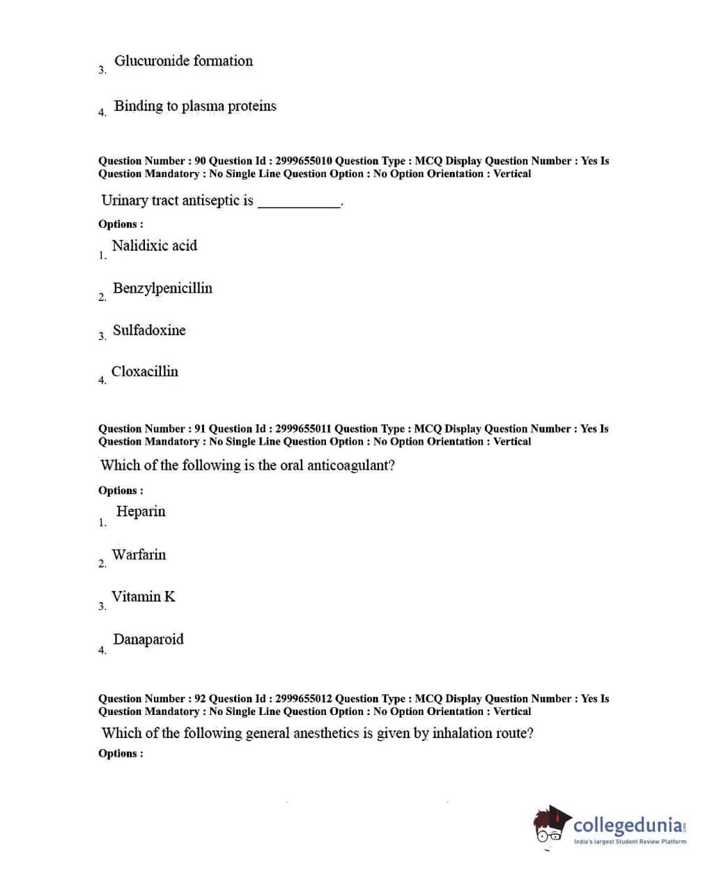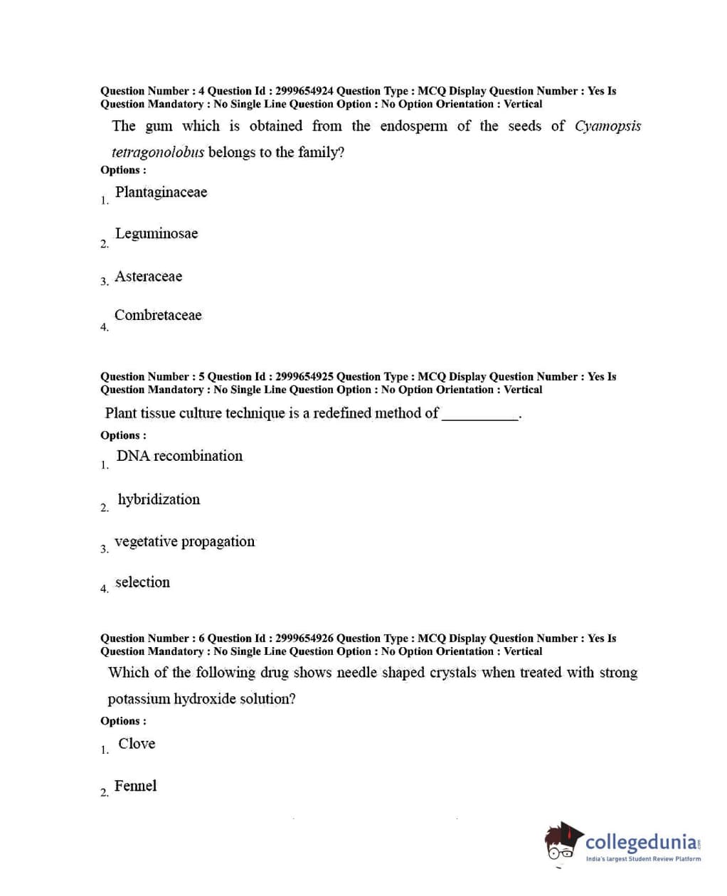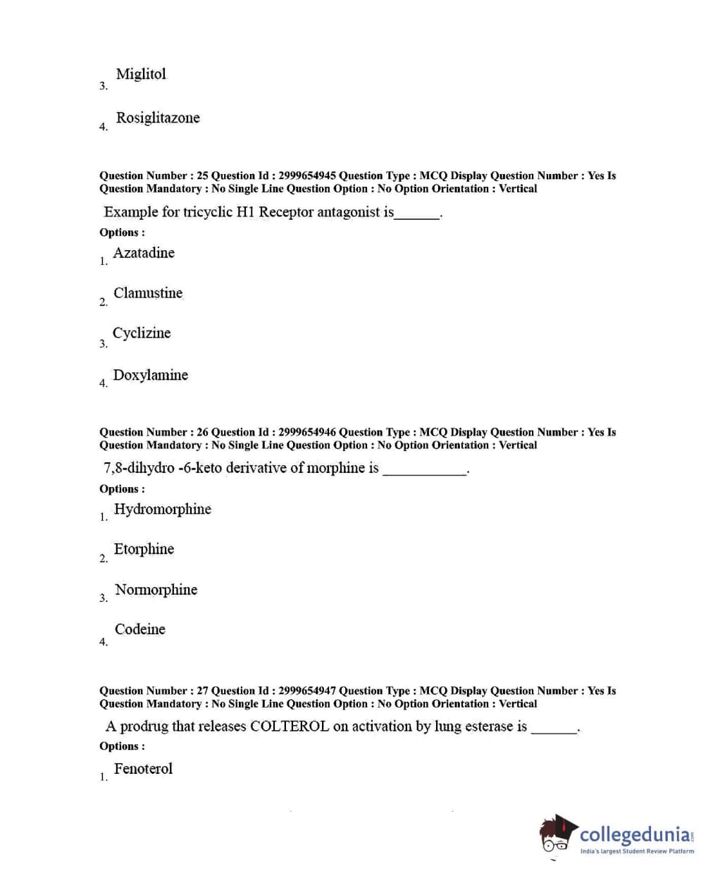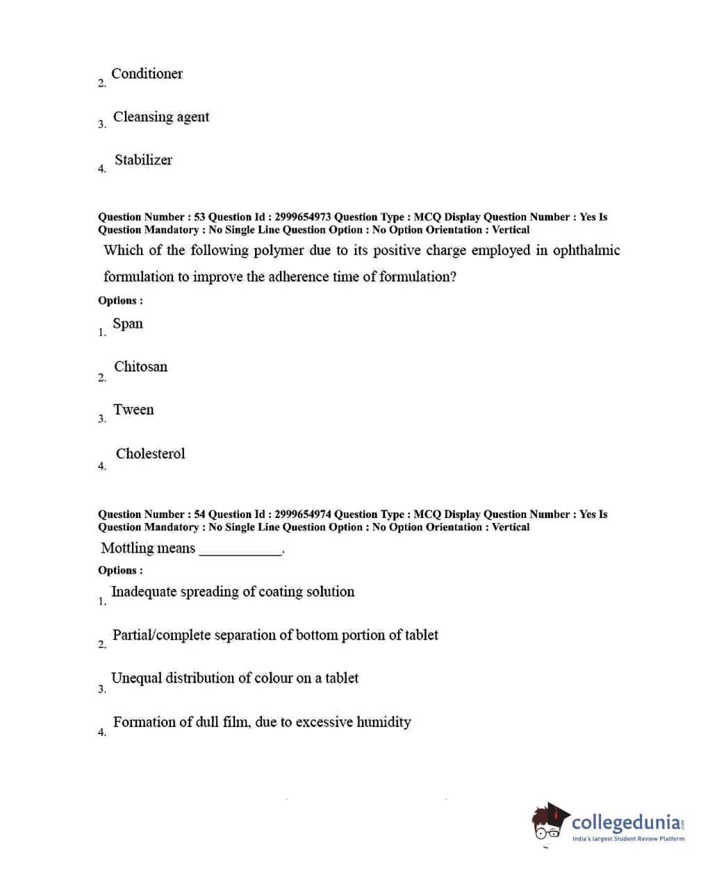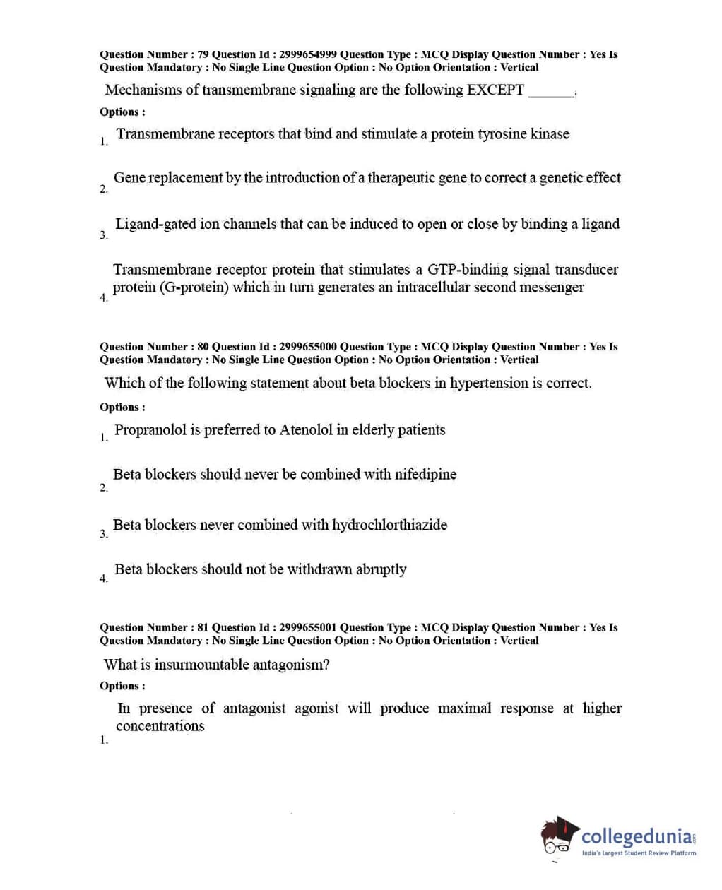 AP PGECET 2020 Pharmacy Question Paper with Answer Key PDFs for Afternoon Session