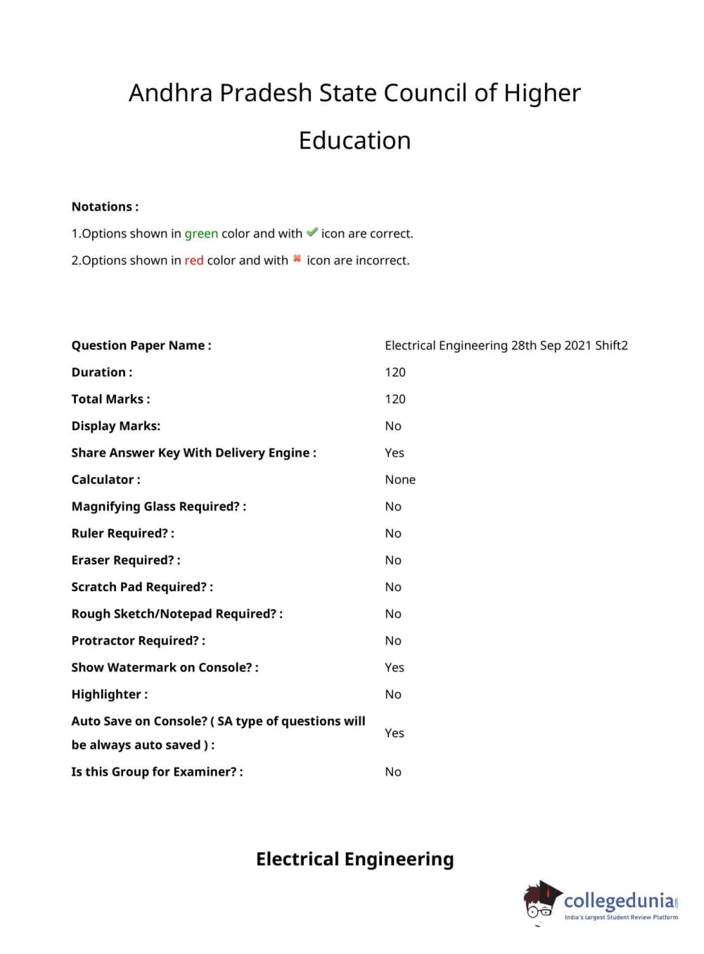 AP PGECET 2021 Electrical Engineering Question paper with answer key pdf conducted on September 28, 2021 in Afternoon Session 3 PM to 5 PM is available for download. The exam was successfully organized by Yogi Vemana University. The question paper comprised a total of 120 questions.