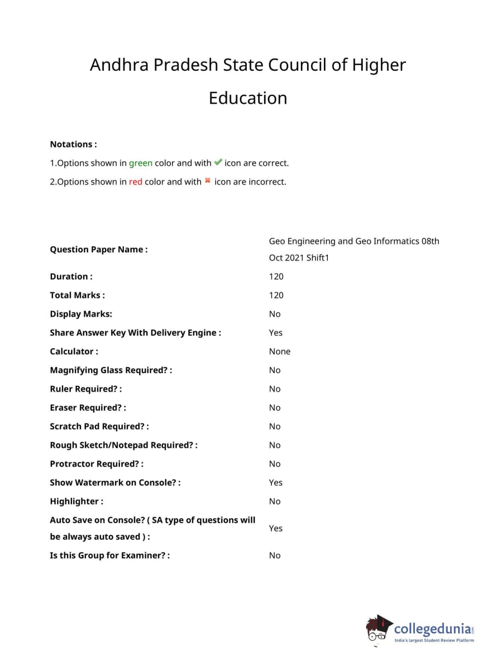 AP PGECET 2021 Geo Engineering and Geo Informatics Question paper with answer key pdf conducted on October 8, 2021 from is available for download. The exam was successfully organized by Yogi Vemana University. The question paper comprised a total of 120 questions.