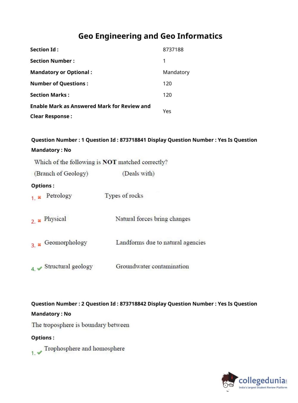 AP PGECET 2021 Geo Engineering and Geo Informatics Question Paper with Answer Key PDF for Forenoon Session