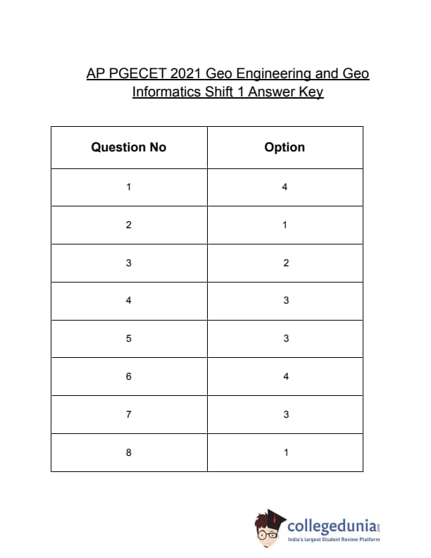 | AP PGECET 2021 Geo Engineering and Geo Informatics Question Paper PDF | AP PGECET 2021 Geo Engineering and Geo Informatics Answer Key PDF |