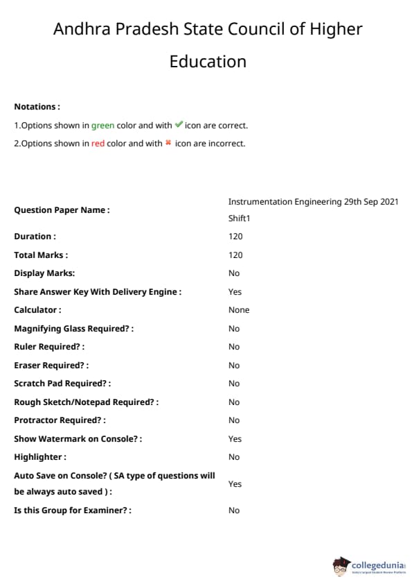 AP PGECET 2021 Instrumentation Engineering Question paper with answer key pdf conducted on September 29, 2021 from is available for download. The exam was successfully organized by Yogi Vemana University. The question paper comprised a total of 120 questions.